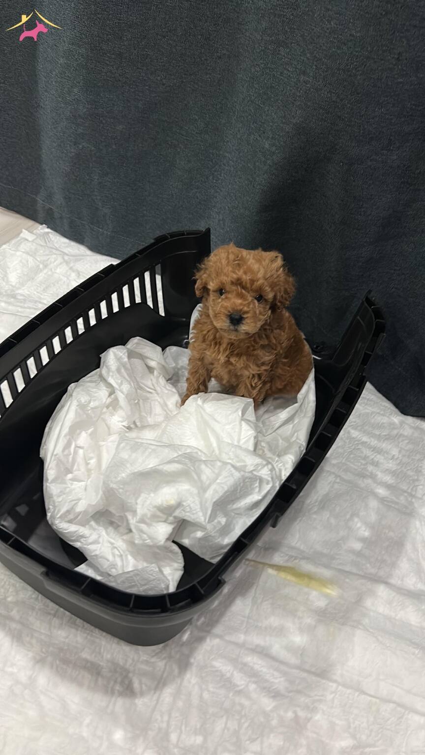 Kıvırcık ve ipeksi kızıl kürküyle dikkat çeken 1.5 aylık safkan erkek poodle yavrumuz yeni ailesini bekliyor.