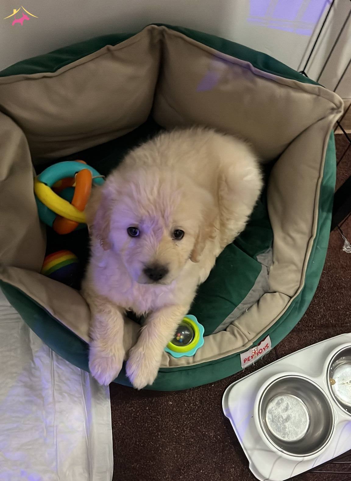 2 aylık yavru golden tuvalet eğitimli dişi günü gelen tüm aşıları yapıldı malzemelerle beraber verilecek