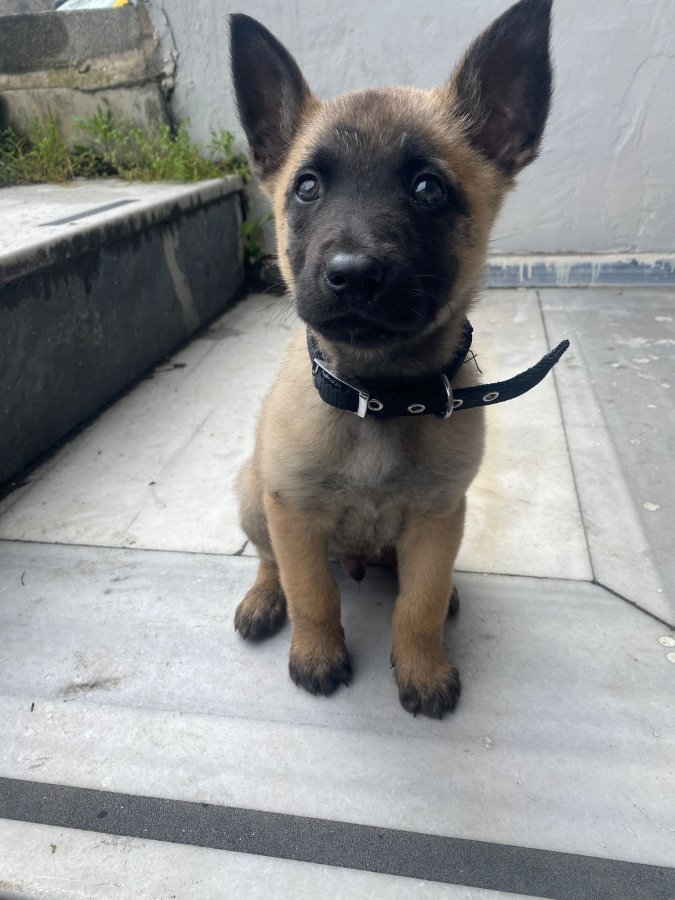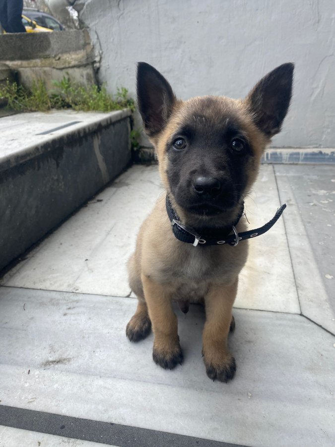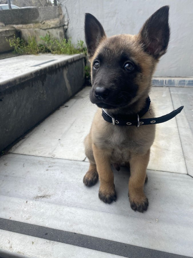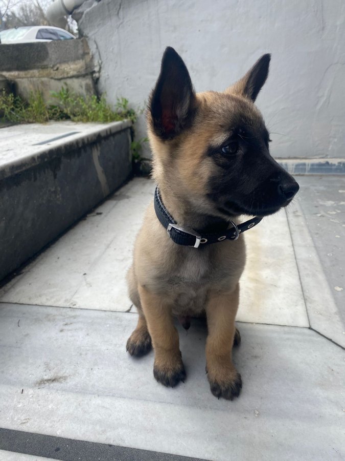 Esenler'deki bu maskeli Belçika Kurdu yavrusu henüz 2 aylık ve safkan.