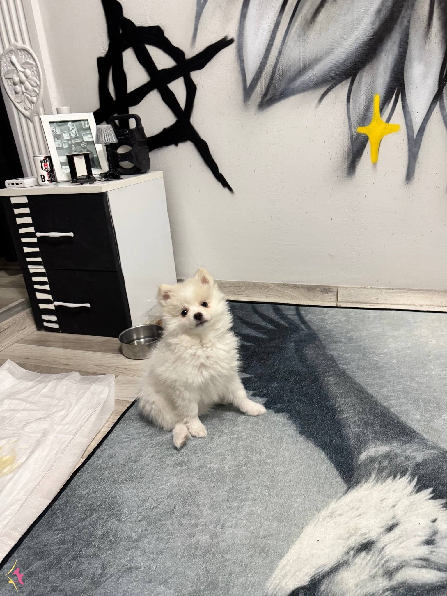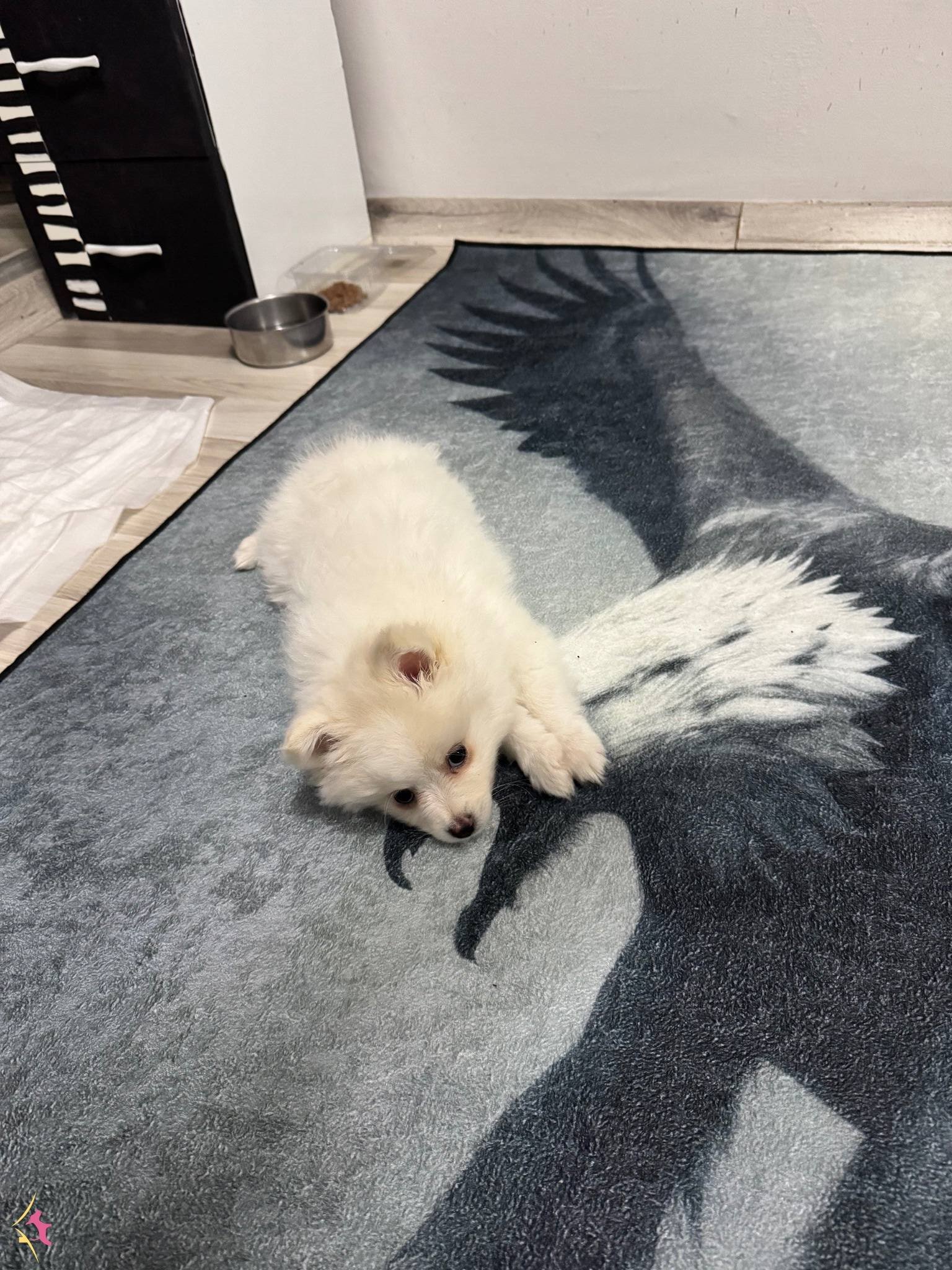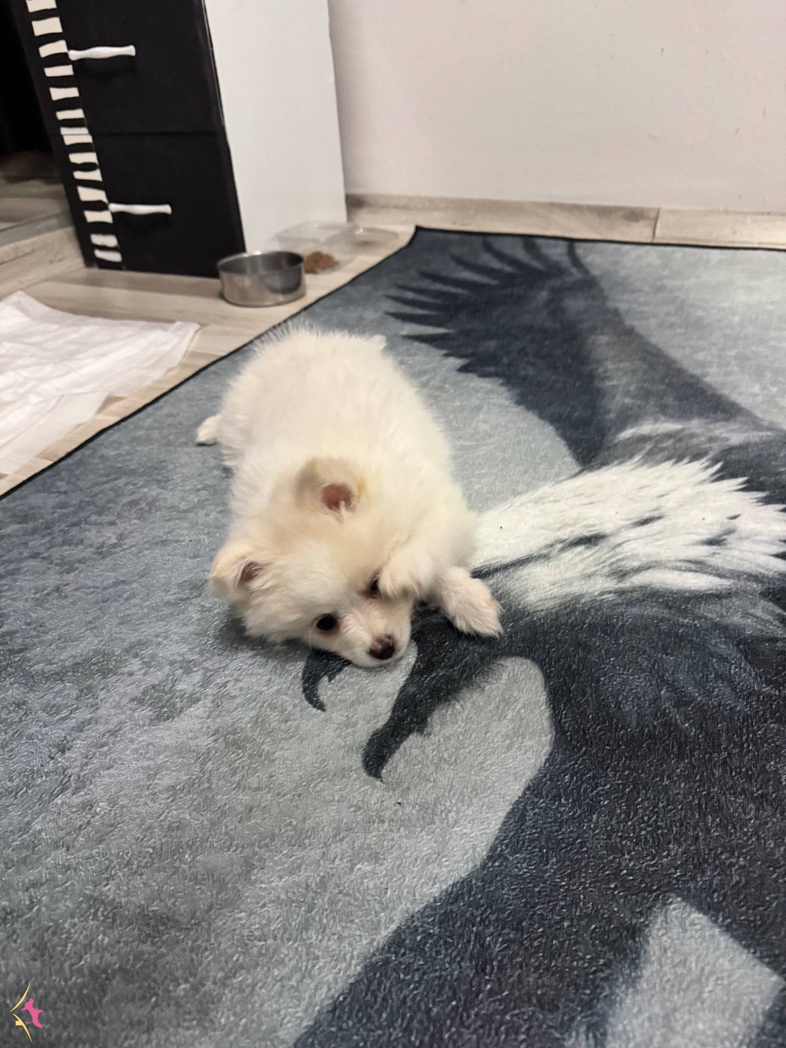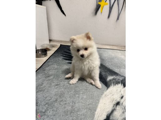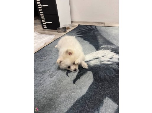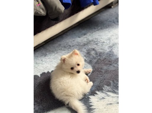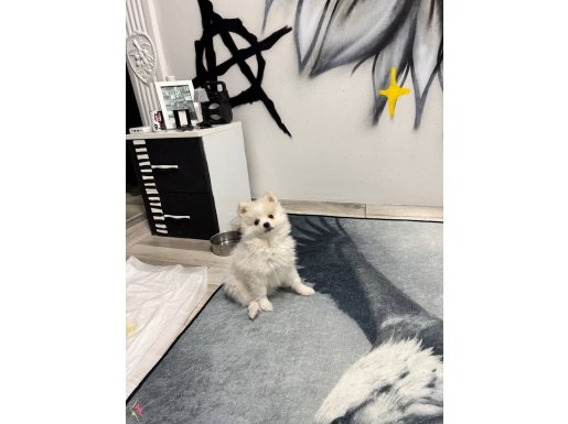 Adeta kutuplardan gelmiş minicik bir kar tanesini andıran, bembeyaz ipeksi tüyleriyle göz kamaştıran bu özel Pomeranian yavrumuz yeni ailesine kavuşmak için gün sayıyor.