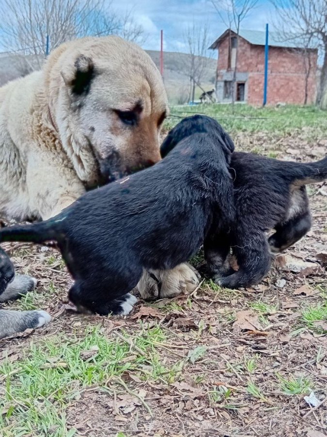İri kemik yapılı, siyah maskeli bu Kangal yavruları karakteriyle güven veriyor.