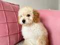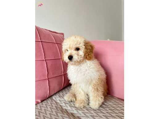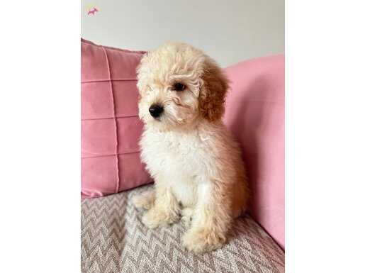 Krem renk kürkü ile renk cümbüşü oluşturan tarçın renk kulakları, kömür karası gözleri ve palyaço burnu ile aşırı miktarda sevimlilik içeren Maltipoo yavrumuz 2,5 aylık oldu, teslim için yeni ailesini bulmak istiyor.