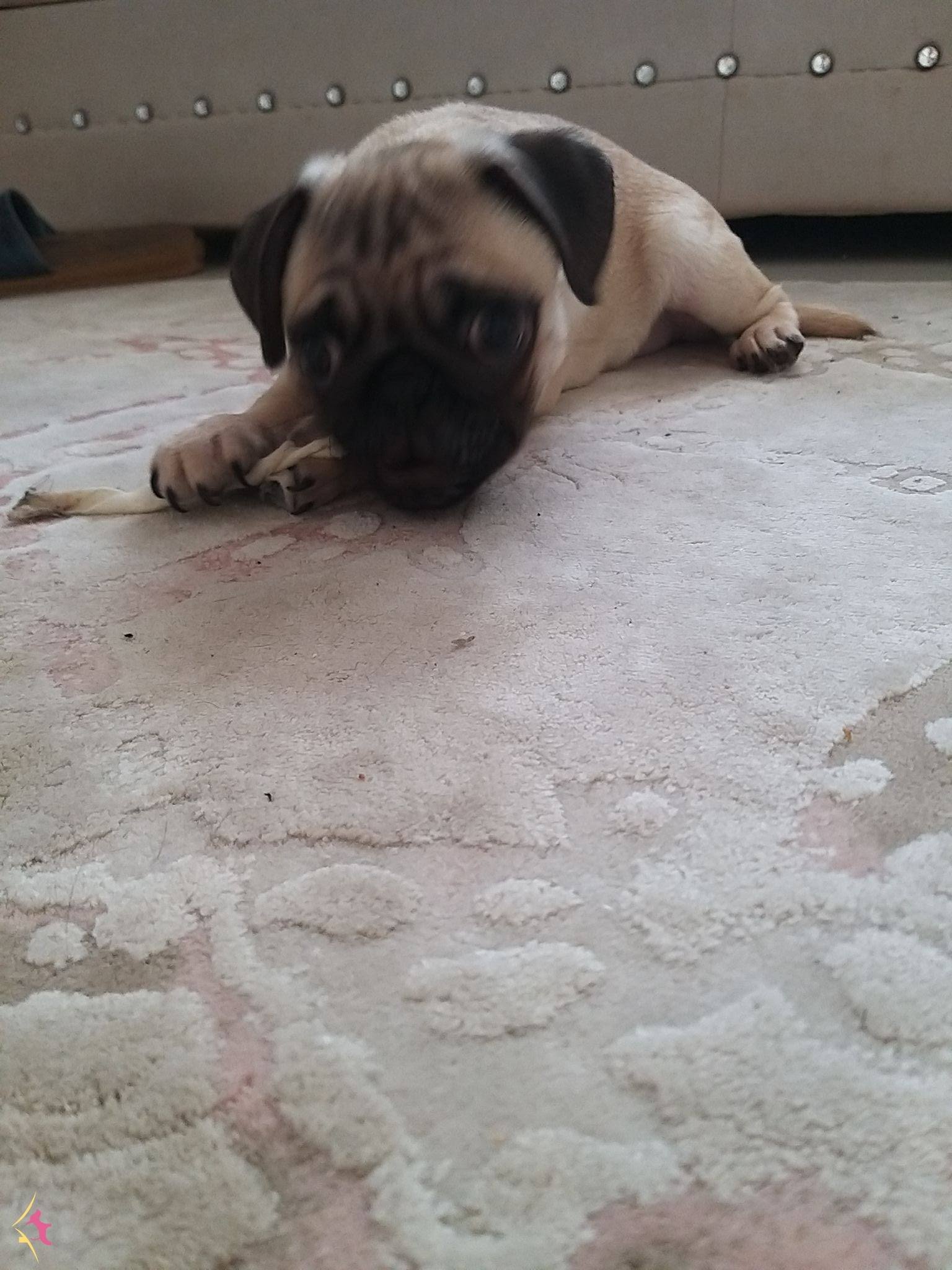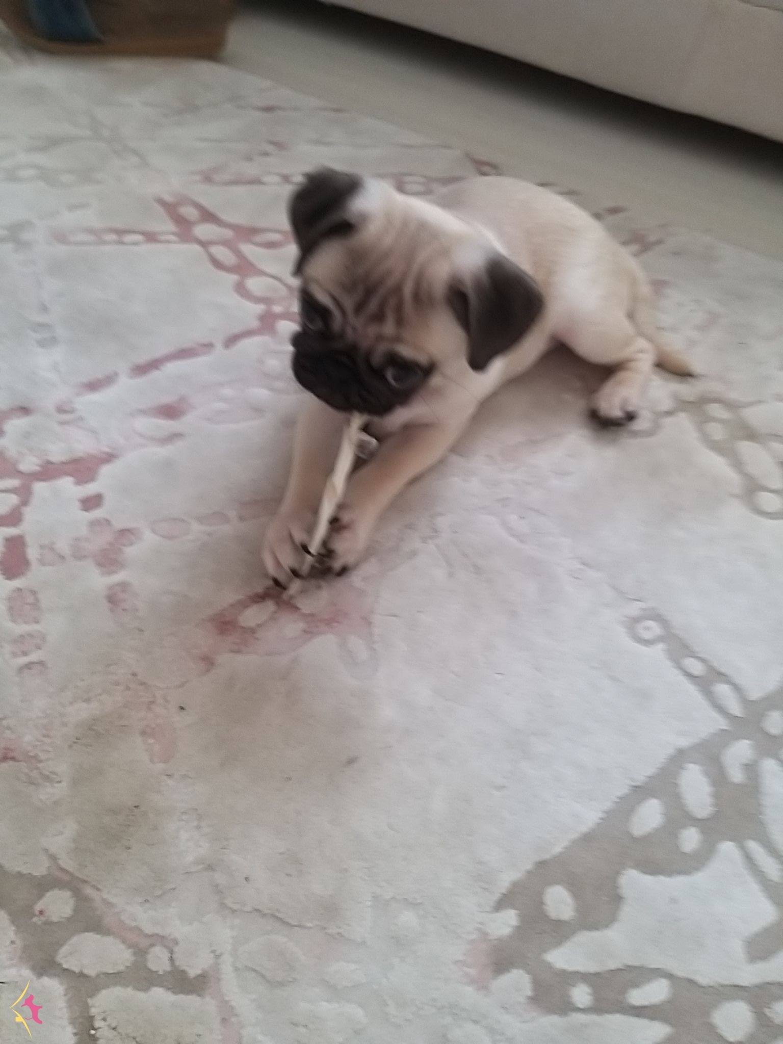 3 aylık erkek çipli pug 2 doz karma 1 doz kuduz ve iç dış parazit yapılmıştır çiplidir alan kişi ile veterinere gidip çip değişikliği yapmamız gerekir tuvalet eğitimi yoktur çok hareketlidir dişleri kasindigi için ısırır ona iyi bakacaksanız yazın lütfen ayda bir foto isterim