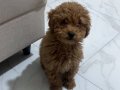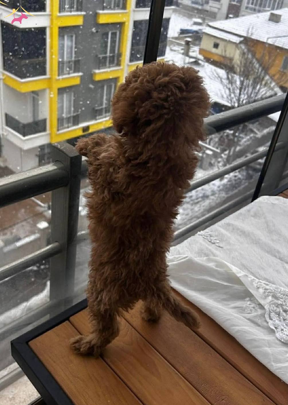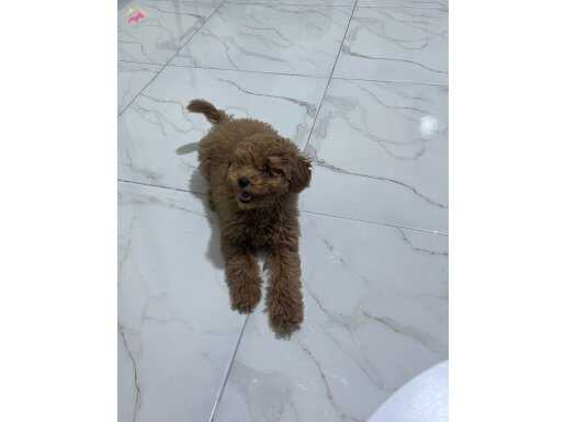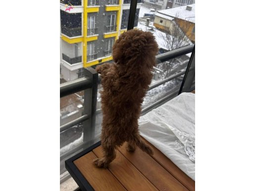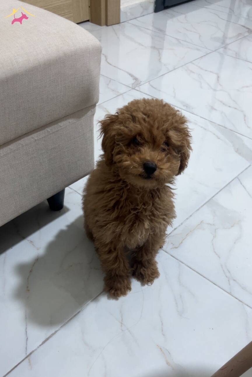 Evde tek kaldığında üzüldüğü için yeni ailesini bekleyen 3.5 aylık erkek Toy Poodle yavrumuz, kürk yapısındaki tarçın-kızıl tonuyla dikkat çekiyor.
