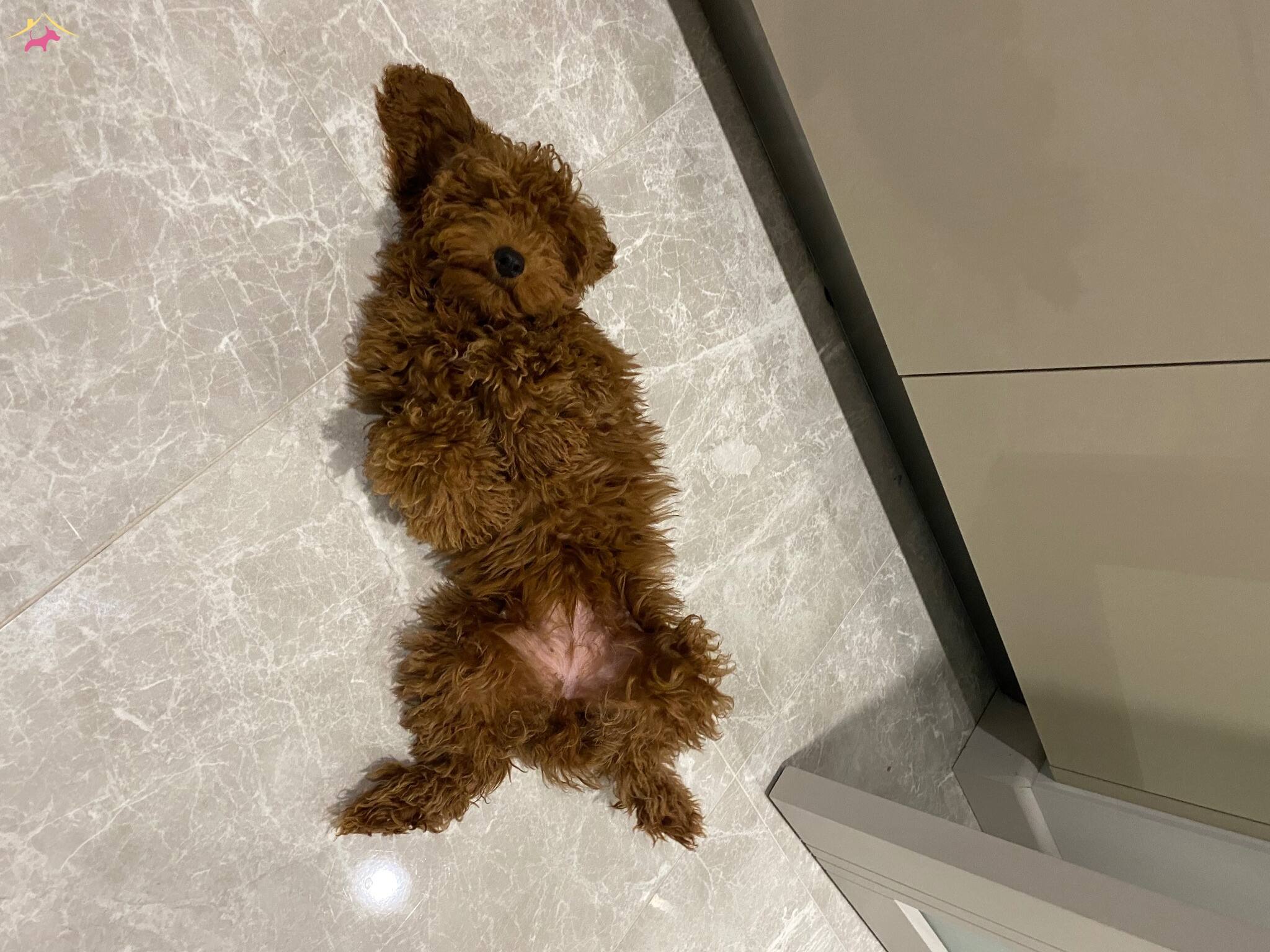 4 aylık Toy Poodle bebeğimiz, yoğun kıvırcık kürk yapısı ve tüylerindeki canlı tarçın tonuyla tam bir sevgi yumağıdır. Ararsanız daha detaylı bilgilendirme yaparım.