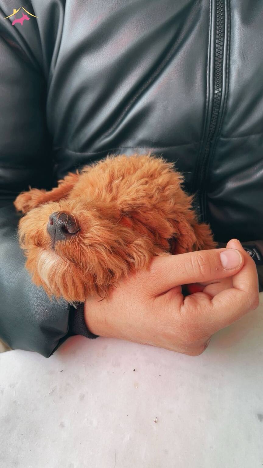 6-7 aylık Toy Poodle yakışıklısı, fotoğraflarda da göreceğiniz üzere ipeksi kızıl-kahve bukleleri ve akıllı bakışlarıyla tam bir sevgi yumağıdır. Ev ortamına çok iyi uyum sağlayan, tüy dökme sorunu olmayan bu kıvırcık dostumuzla hayatınıza neşe katarken aynı zamanda semtin en dikkat çeken ve prestijli karakterine sahip olacaksınız.