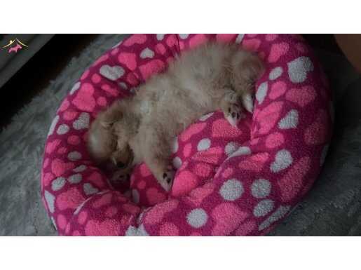 6 aylık bu dişi Pomeranian Boo, temel eğitimlerini tamamlamış son derece sosyal bir dosttur. Pofuduk kürkü ve karakteristik yüz hatlarıyla dikkat çeken küçük yavrumuzu çocukların alerji durumu nedeniyle mecburen yeni yuvasına uğurluyoruz.
