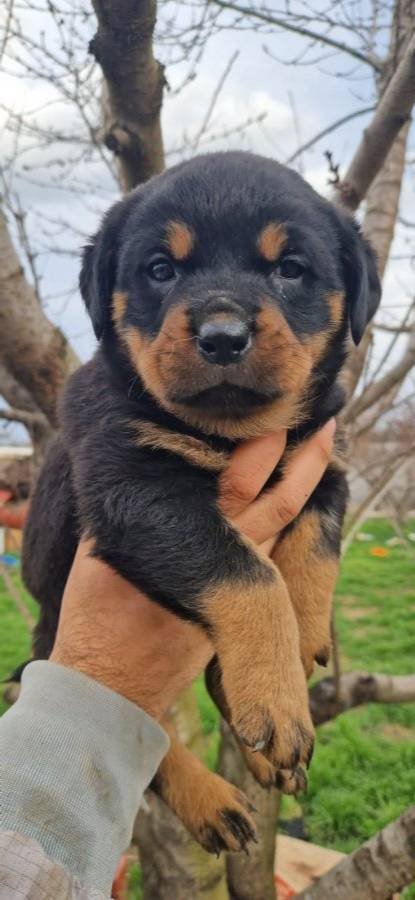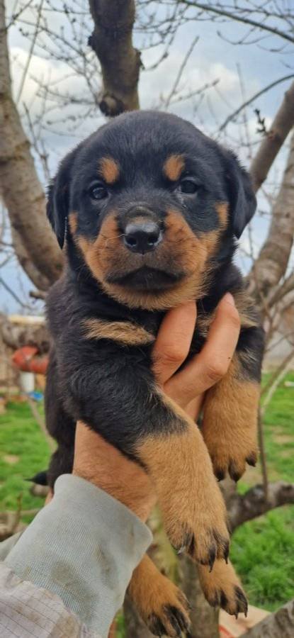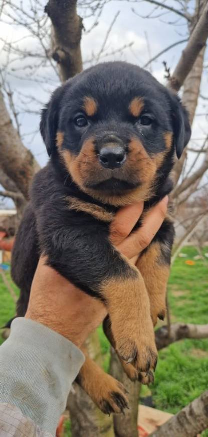 İri patileri, dolgun fiziği ve koyu maskeli bakışlarıyla a kalite macar rottweiler yavrularımız.