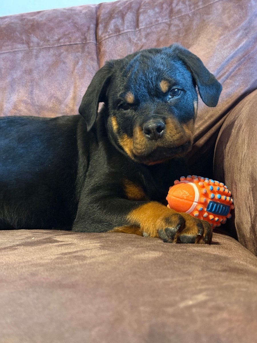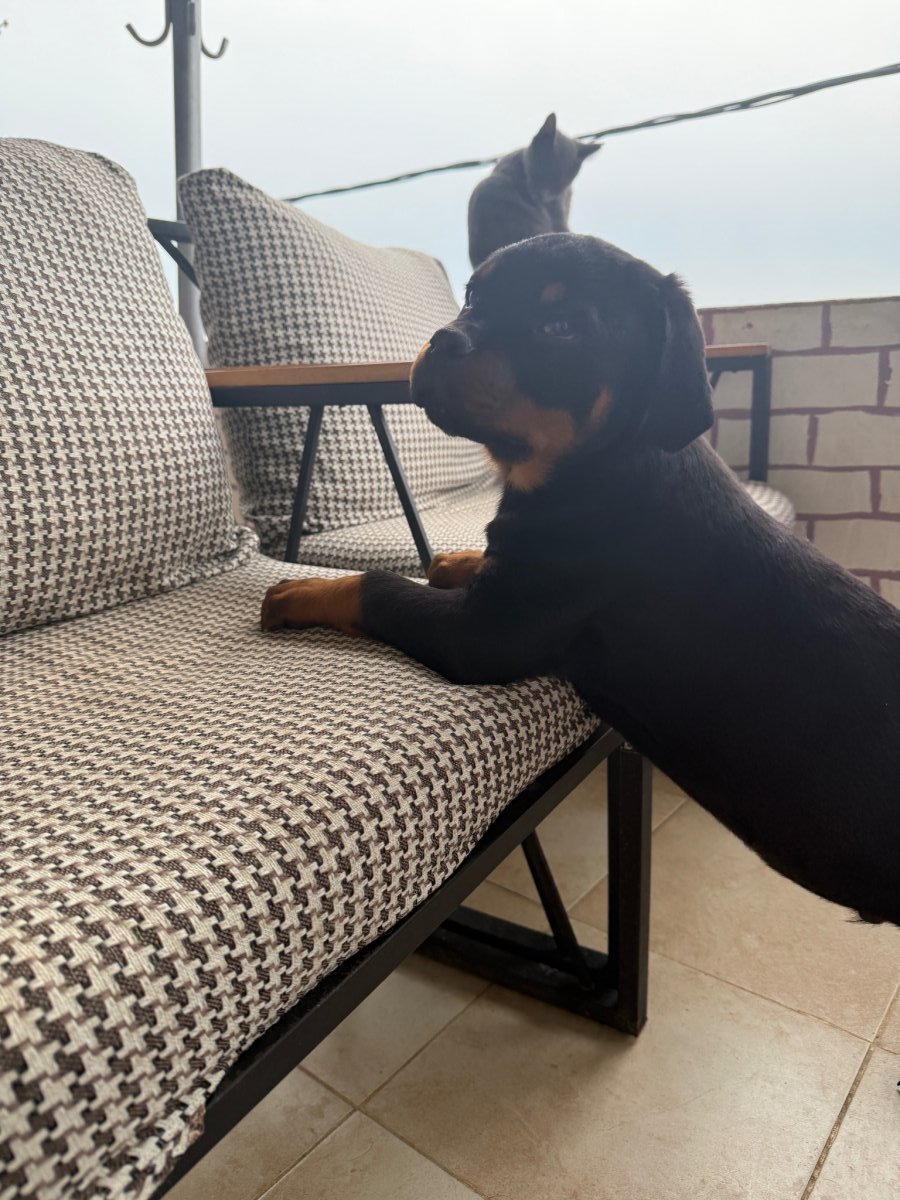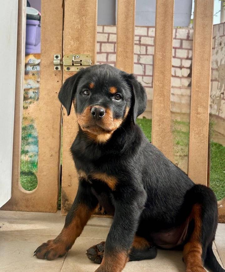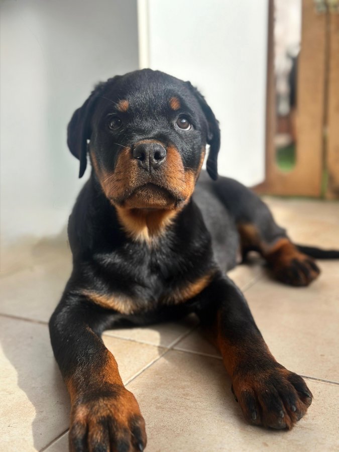 Show Rottweiler köpeği anne babanın yavrularıdır, dereceleri mevcut.