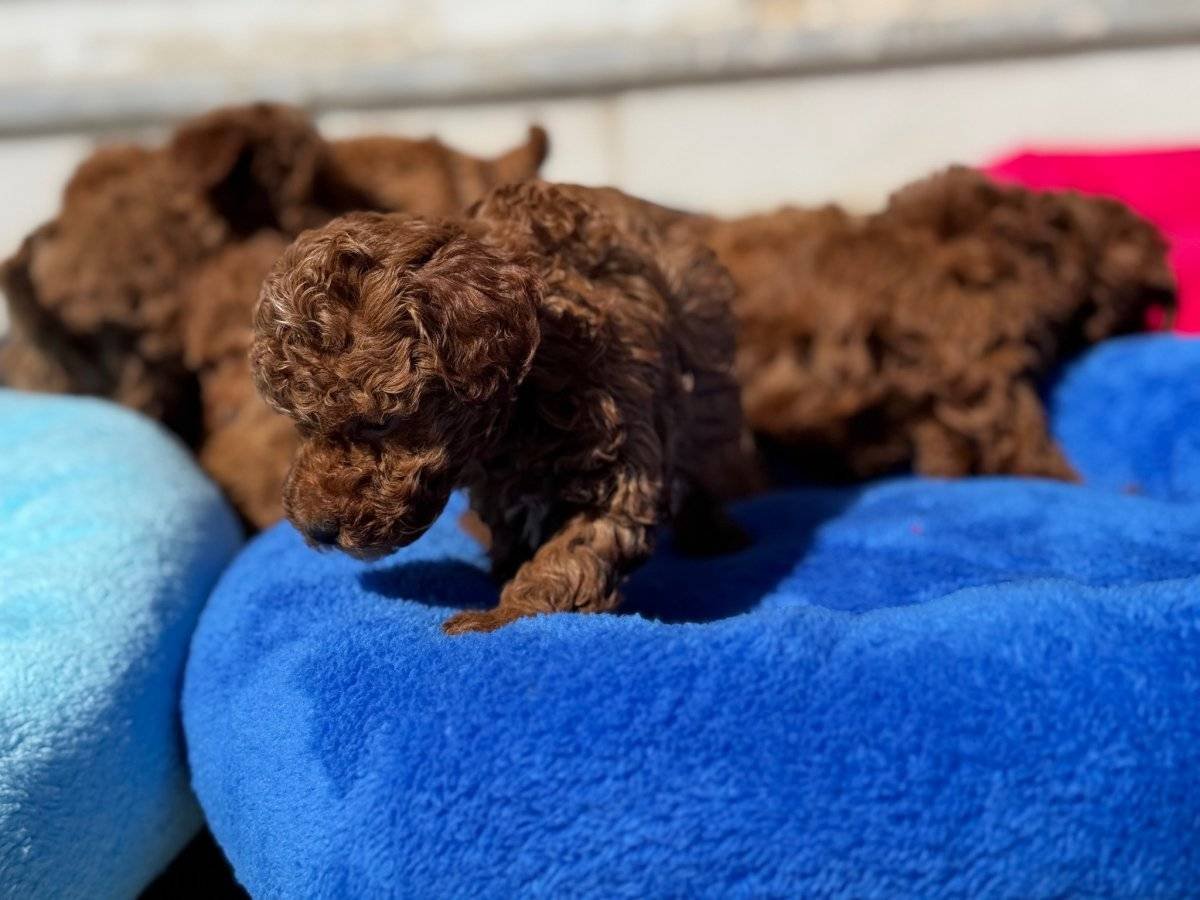 Pasaportlu, tüm aşıları tam show kalite oyuncu çikolata Toy Poodle yumakları teslime hazır.