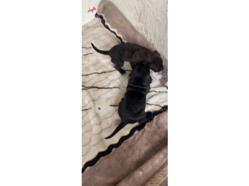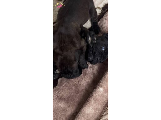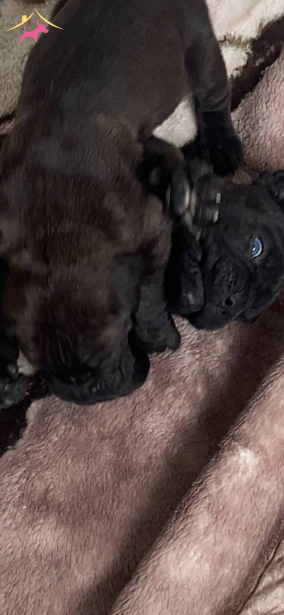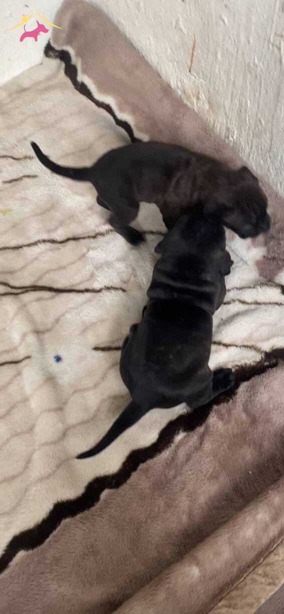 74 günlük şecereli devler tam birer anatomi harikası. Anne ve babası şampiyonluk ödüllü atalardan gelen bu son iki erkek yavru, siyahın en derin tonuna ve karakteristik maskeli yüz hatlarına sahip.