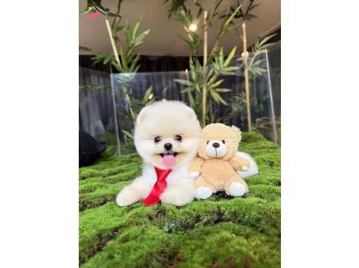Ayı surat yapısına sahip bembeyaz tüyleriyle göz kamaştıran Pomeranian Boo bebeklerimiz ömürlük yuvalarına gitmeyi bekliyor.