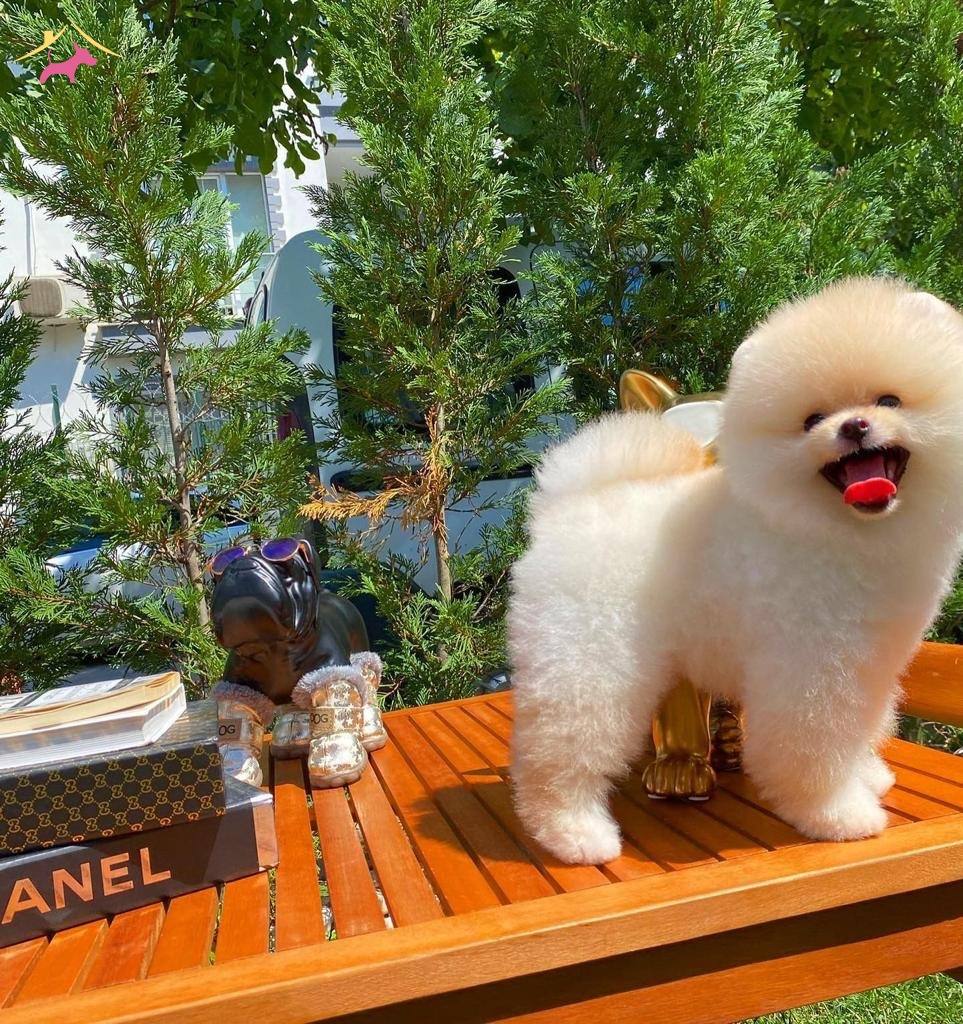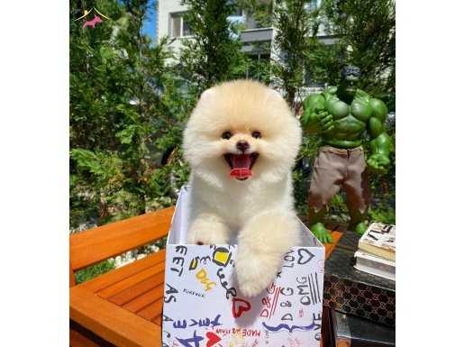 Minicik gülen yüzü ve gösterişli sarı kürkü ile Pomeranian Boo ailesinin en yakışıklısı olan oğlumuz yeni ailesini tanımak için hazır.