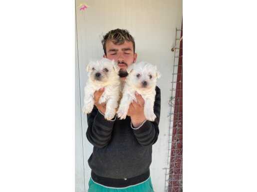 Zekâsı ve hipoalerjenik tüy dökmeyen yapısıyla bilinen beyaz Maltese Terrier yavrularımız yeni yuvalarına gitmeye hazır durumdadır. İpeksi beyaz kürkleri, uysal karakterleri ve boyutlarına rağmen cesur tavırlarıyla bu minikler apartman yaşamına en uyumlu dostlardır.