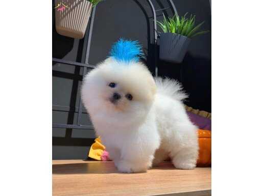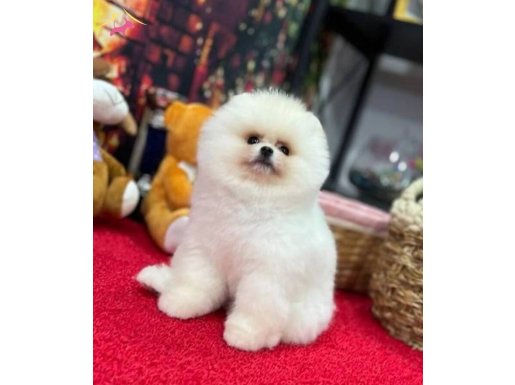 Bakırköy’de elden teslim alabileceğiniz bu 3 aylık Pomeranian Boo, yarışma standartlarındaki formu ve bembeyaz pofuduk kürküyle gerçek bir tüy yumağıdır. Tuvalet eğitimi tamamlanmış olan minik dostumuz, veteriner kontrollü ve ırk güvencesiyle yeni yuvasına geçmeye hazır bekliyor.