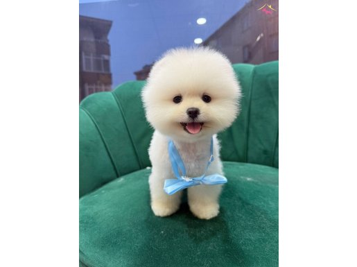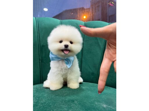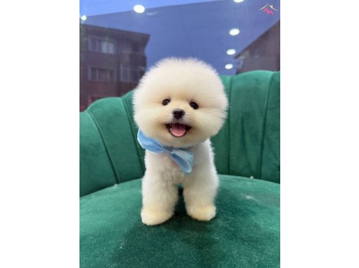 Ev ortamında baktığımız, insanlarla ve diğer petlerle uyumu mükemmel, teddy face beyaz lokum Pomeranian Boo yavrumuz tek kelimeyle harikulade.