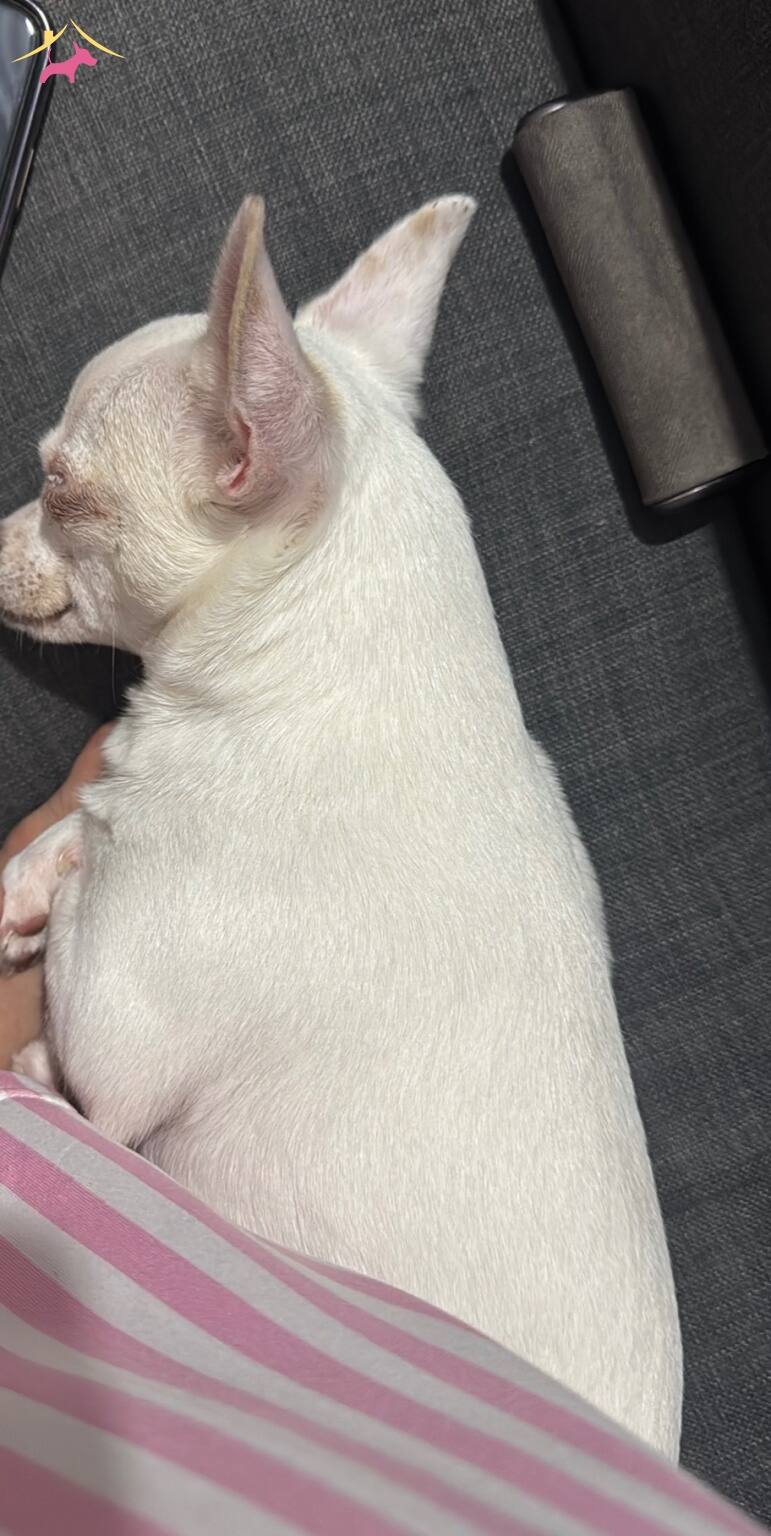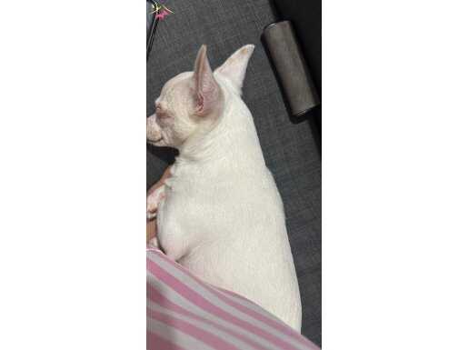 Beyaz renk elma kafa koca kulak Chihuahua yavrumuz microchipli, pasaportlu ve olup çok akıllı, havlama, ısırma saldırma huyu yok.
