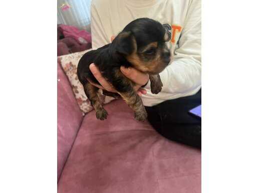 Teacup boy ölçülü blacktan maskeli surat Yorkshire Terrier bebeklerimiz aile ortamında büyümekte olup apartmanda bakım için uygun.