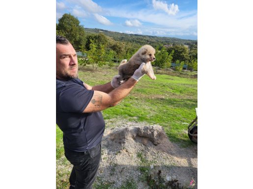 Kahverengi kıvrık kuyruk çekik göz Akita Inu bebeklerimiz ırkının kalitesini yansıtan güzelliği ve anatomisiyle on numara beş yıldız.