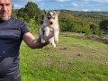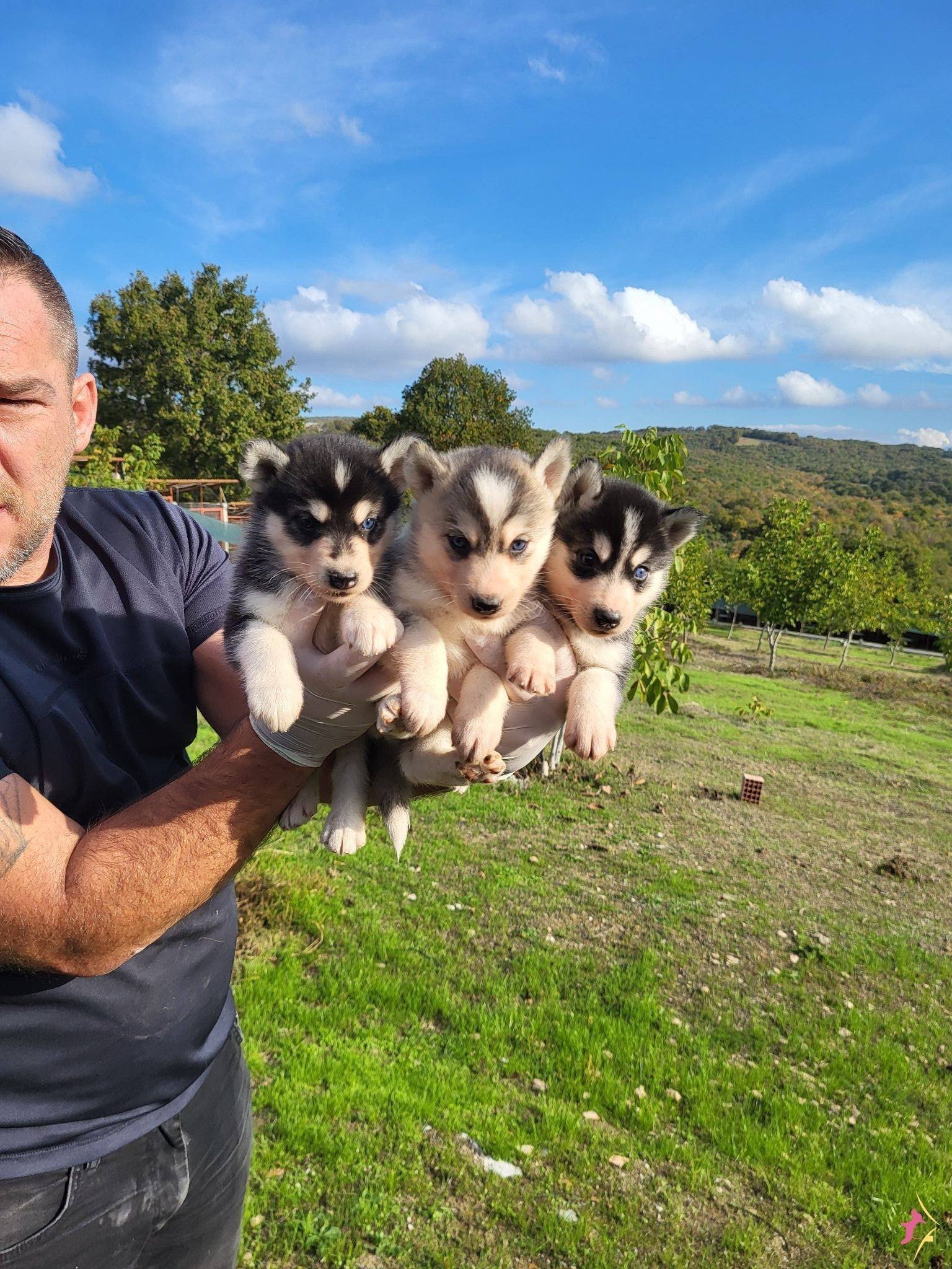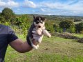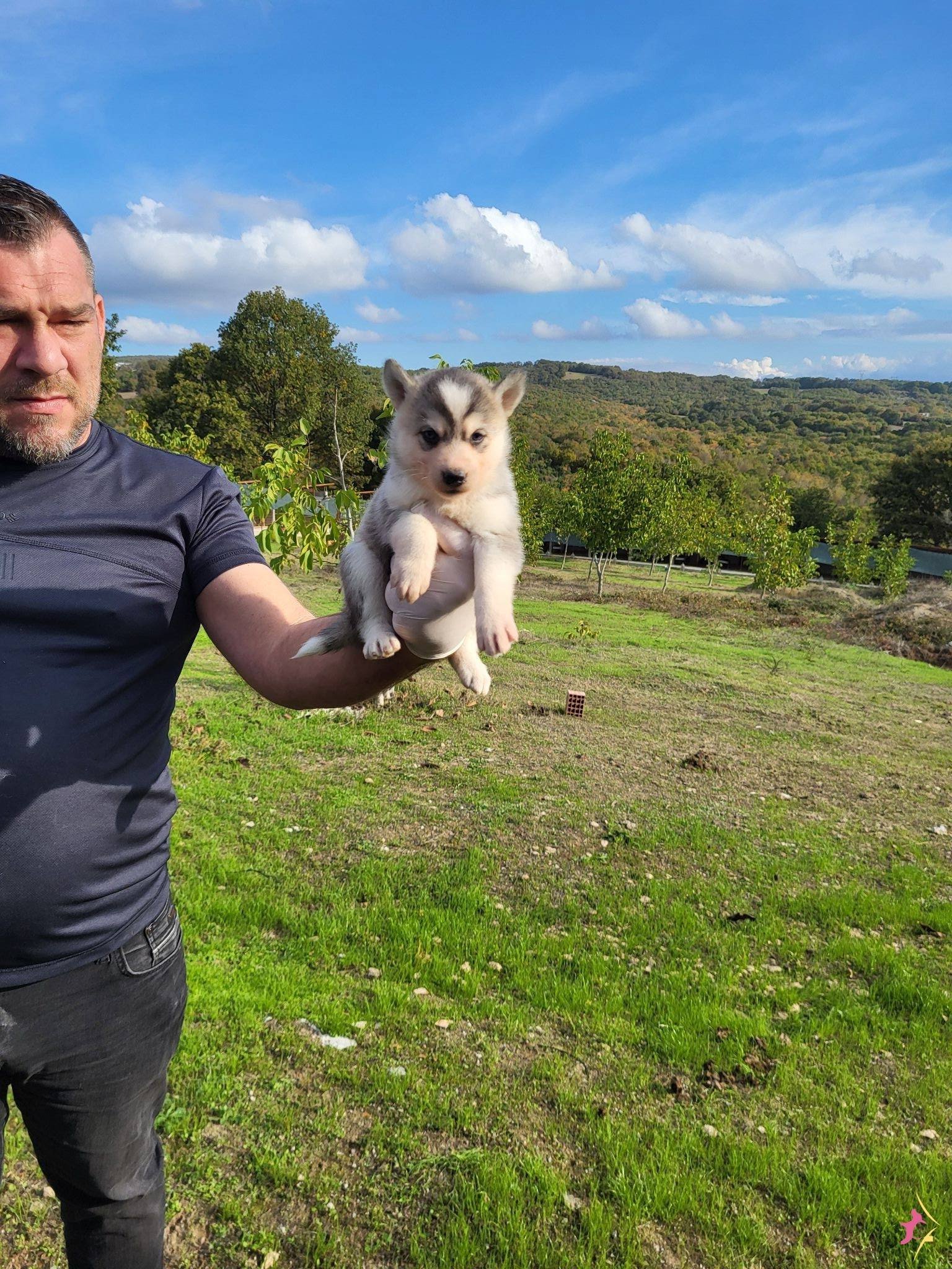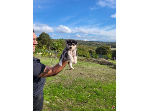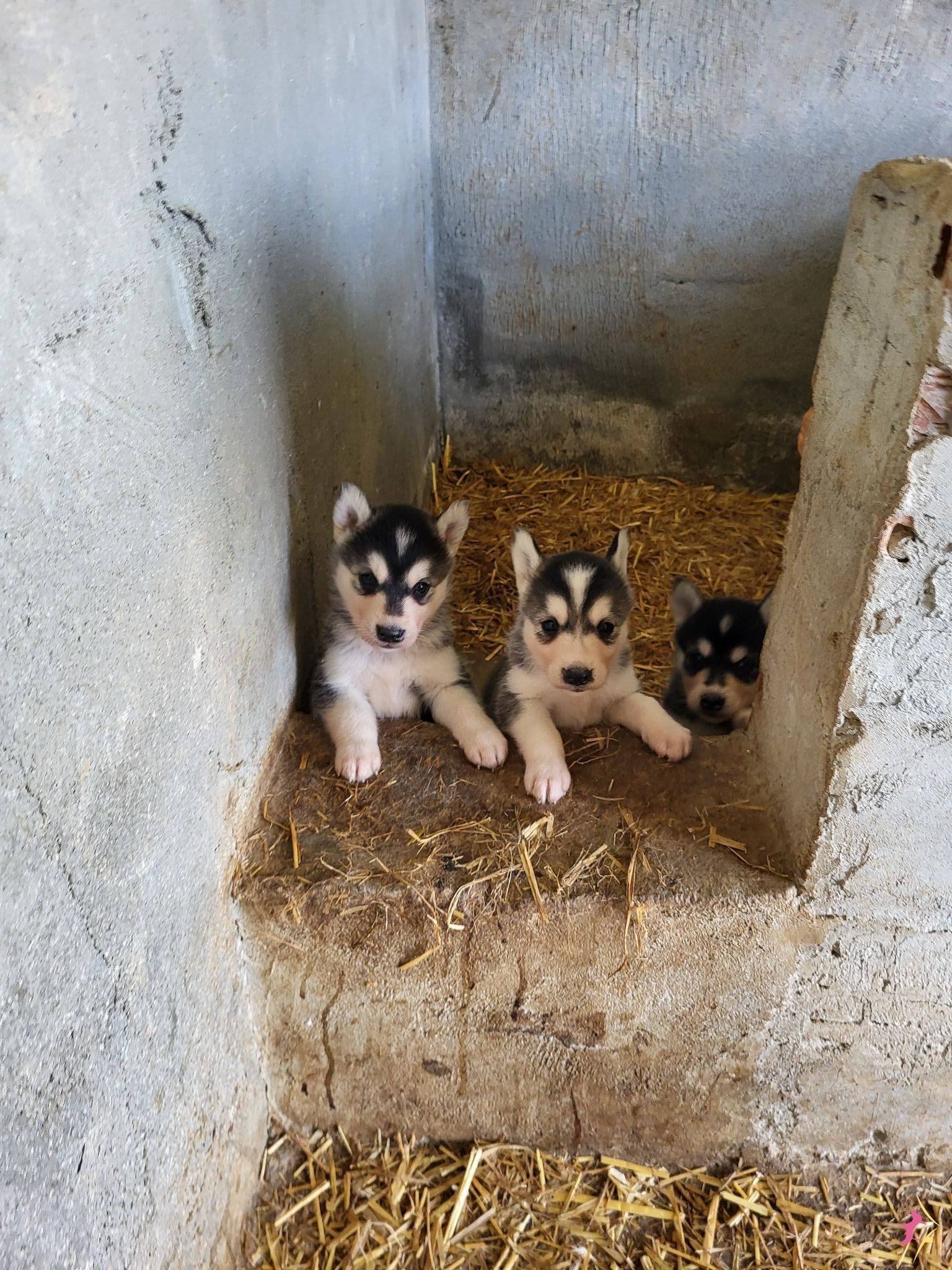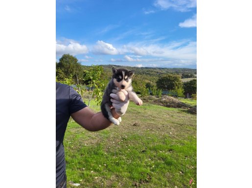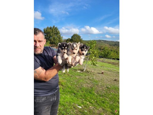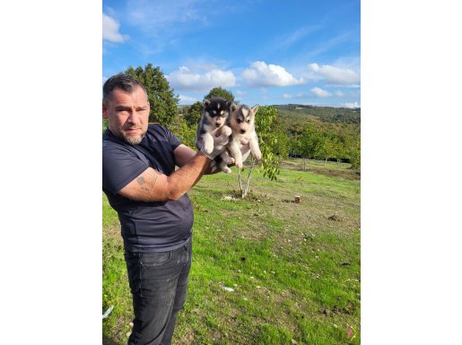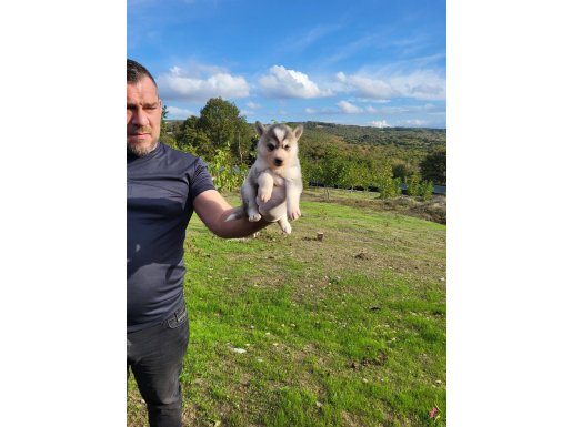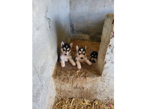 Gri beyaz ve füme bayaz renk seçenekli dik kulak yüz maskeli Husky yavrularımızın her şeyi tam tek isteği ömürlük ailesine kavuşmak.