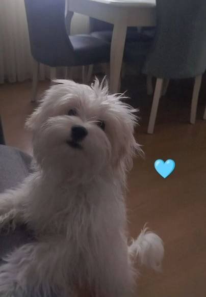 Bu sevimli Maltese Terrier yeni yuvasına mutluluk taşımaya hazır.