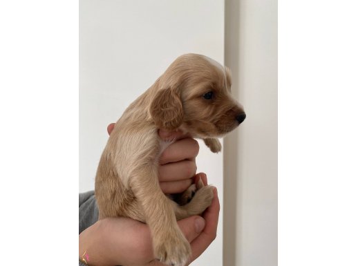 Yavrumuz 1 Aylık Erkek Spaniel Cocker. Mama ve anne sütüyle iyi şartlarda bakılıp besleniyorlar. 2 hafta içinde Teslime hazır olacaklar, satışta olan diğer ilanlarımıza bakabilirsiniz. Not: Yerimiz Antalyadadır ve İl dışına Teslimatımız yoktur.