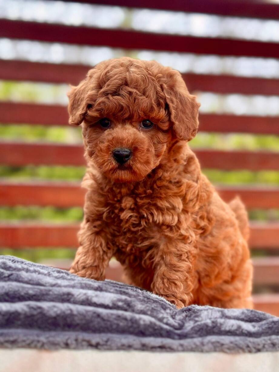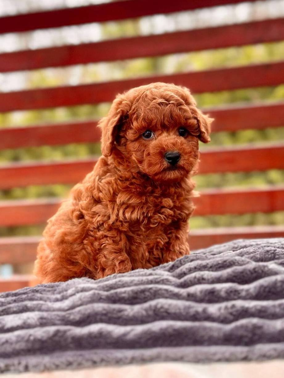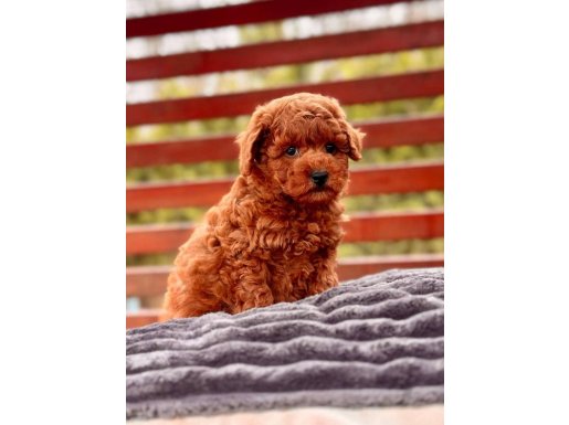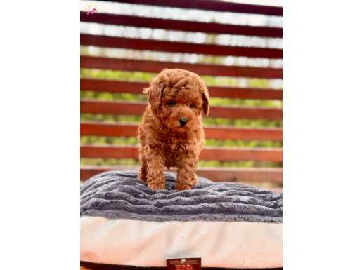 Güneşte parlayan ipeksi tarçın-kızıl kürkü ve pofuduk yüzüyle İstanbul Çekmeköy’de 3 aylık bu özel Toy Poodle sizi bekliyor.