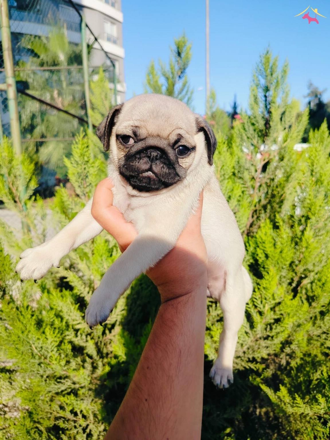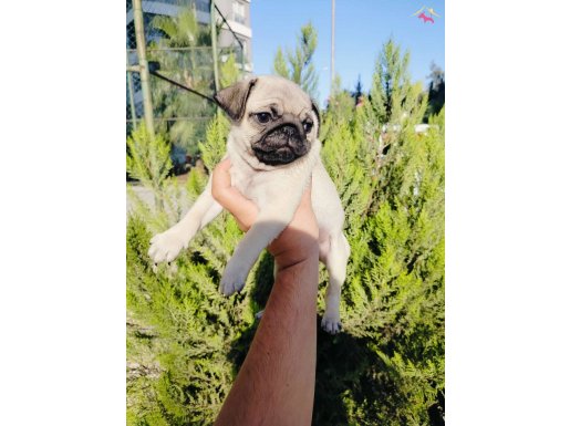 Yanınızdan ayırmayacağınız maskotunuz olmaya hazır fawn renk basık burun patlak göz Pug yavrumuz buruşuk alnı ile tüm ilgiyi üzerine topluyor.