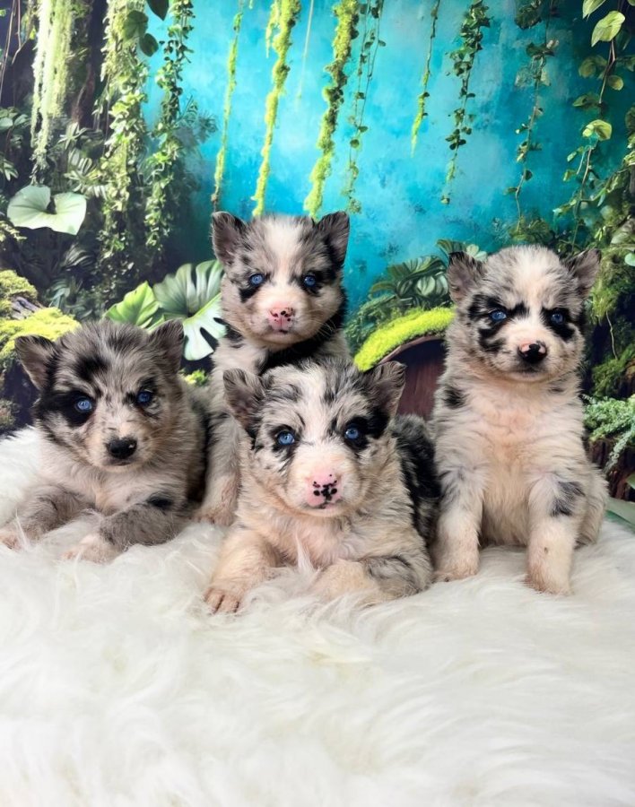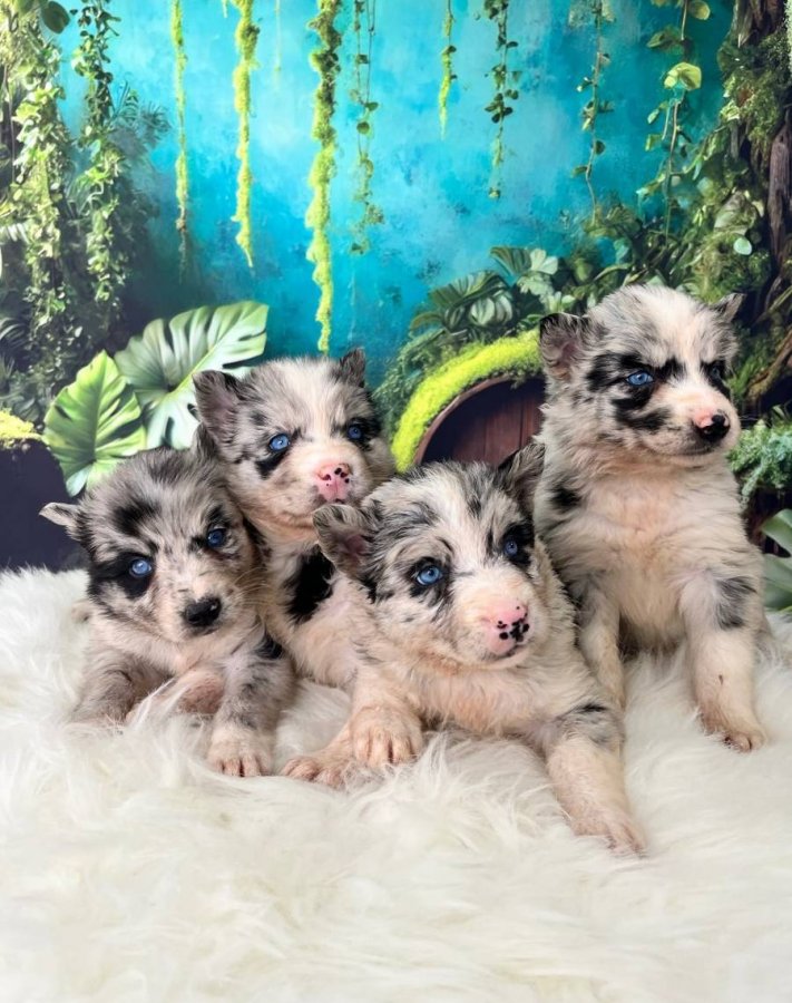 Bu Border Collie bebeklerin büyüleyici mavi gözlerine ve desenlerine yakından bakın, hayran kalacaksınız.