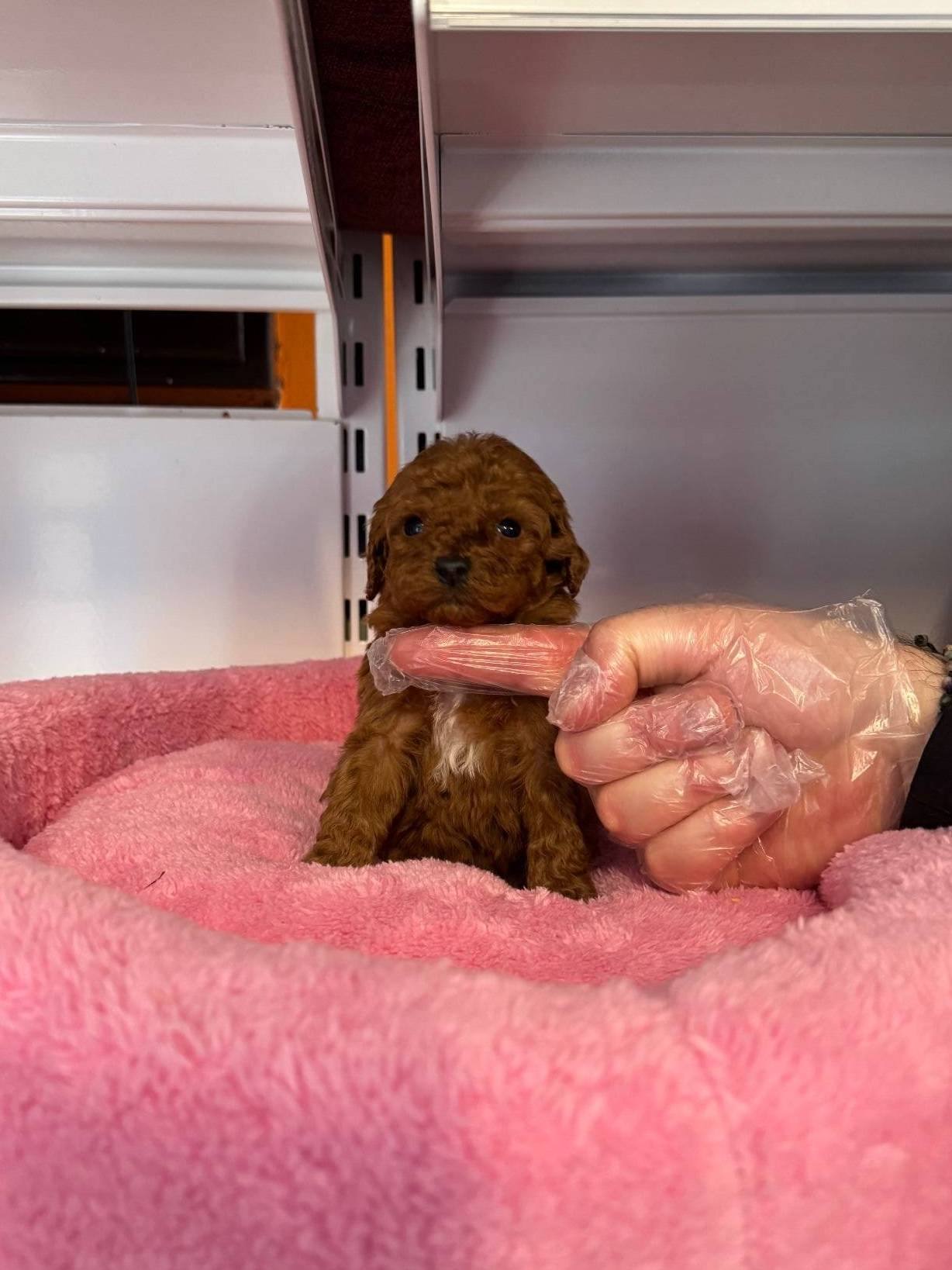 Gerçek tea cup boyut garantili, Kore kan hatlı Red Browne Poodle bebeğimiz yeni yuvasını bekliyor.