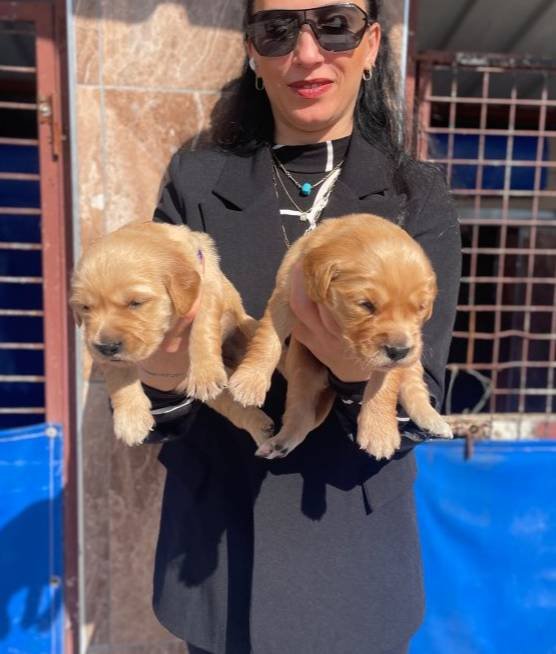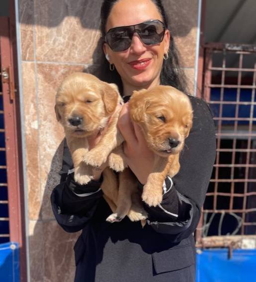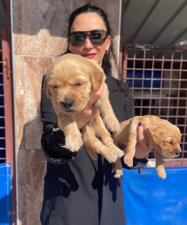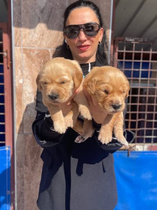 Veteriner kontrollü, aşıları tam bu Golden Retriever afacanları, ipeksi kürkleriyle tam birer sevgi yumağı.
