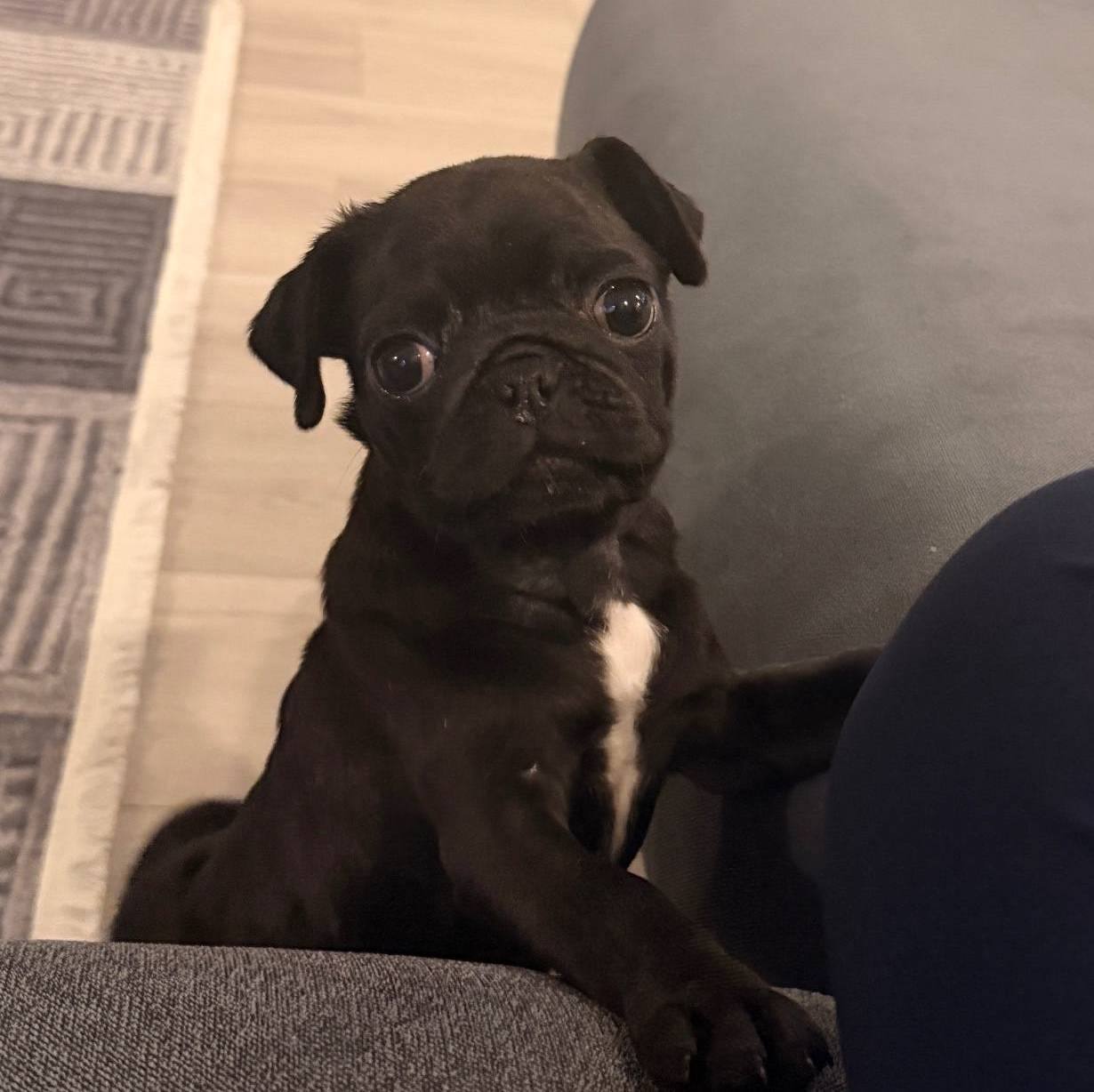 Karakteristik simit kuyruğu ve parlak siyah kürküyle dikkat çeken, iki aylık asil erkek Pug yavrumuz yuva arıyor. Sosyal becerileri yüksek, insan canlısı ve zeka dolu bakışlarıyla bu bebek surat dostumuz, aile yaşantısına kusursuz uyum sağlar.