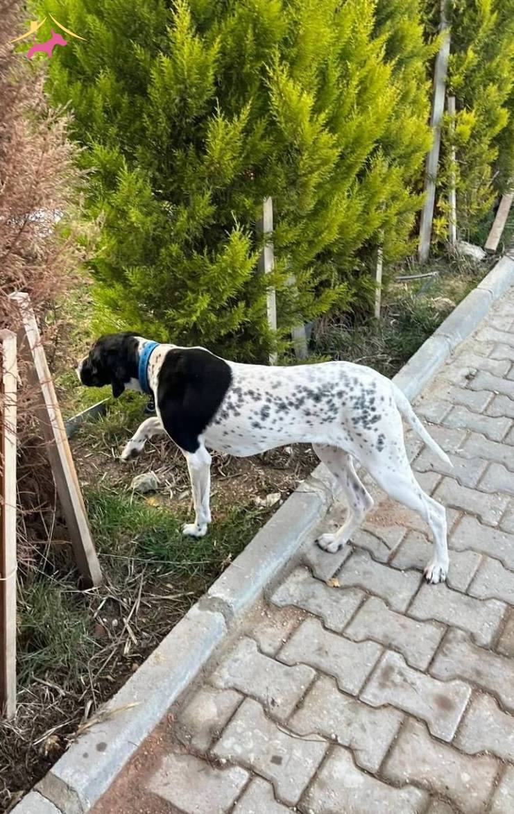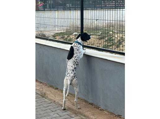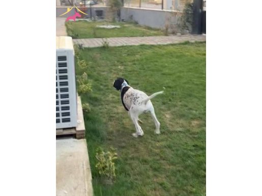 Fermada sabırlı, av geçmişi bulunan 8 aylık safkan Pointer; karakteristik atletik yapısı ve odaklanma yeteneğiyle dikkat çekiyor.
