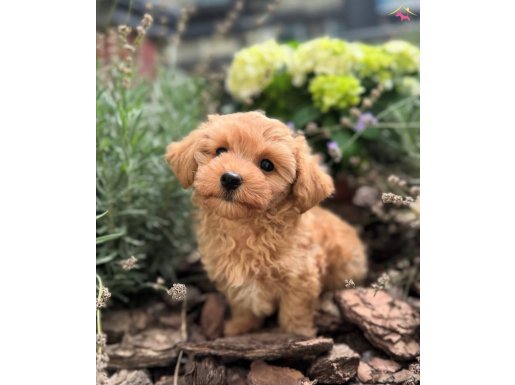 Kobalak gözlü Maltipoo altın renkli show kalite kürk rengiyle beğeni toplayan aile köpeklerimizi sizleri bekliyor.