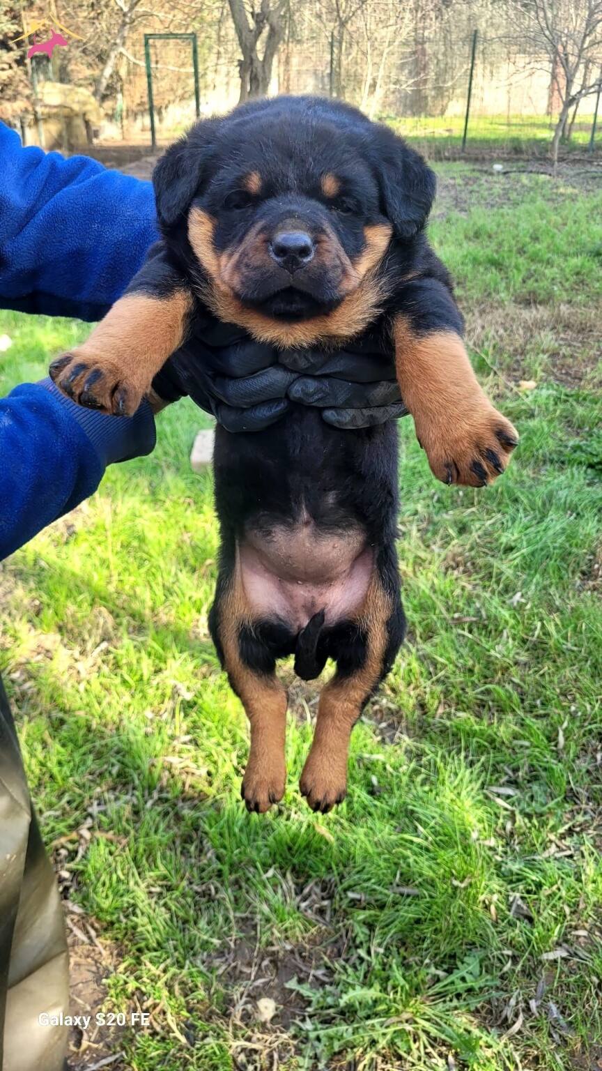 Irk standartlarına uygun, güçlü kemik yapısına ve dolgun kafa yapısına sahip Rottweiler yavrularımız