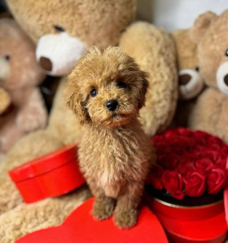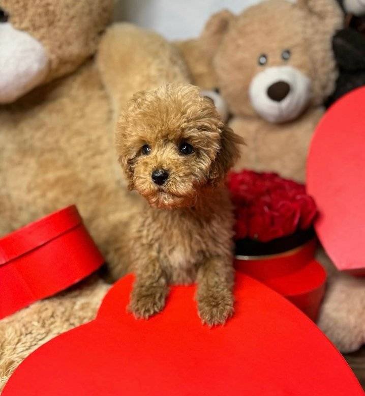 İki aylık bu kıvırcık tüy yumağı Maltipoo bebeğimiz yeni yuvasını bekliyor.