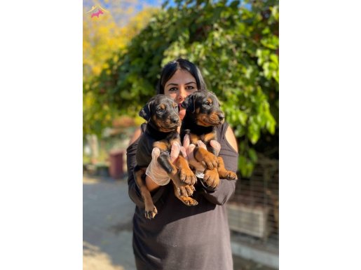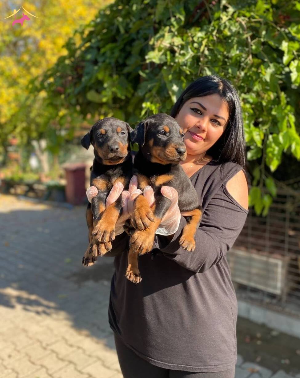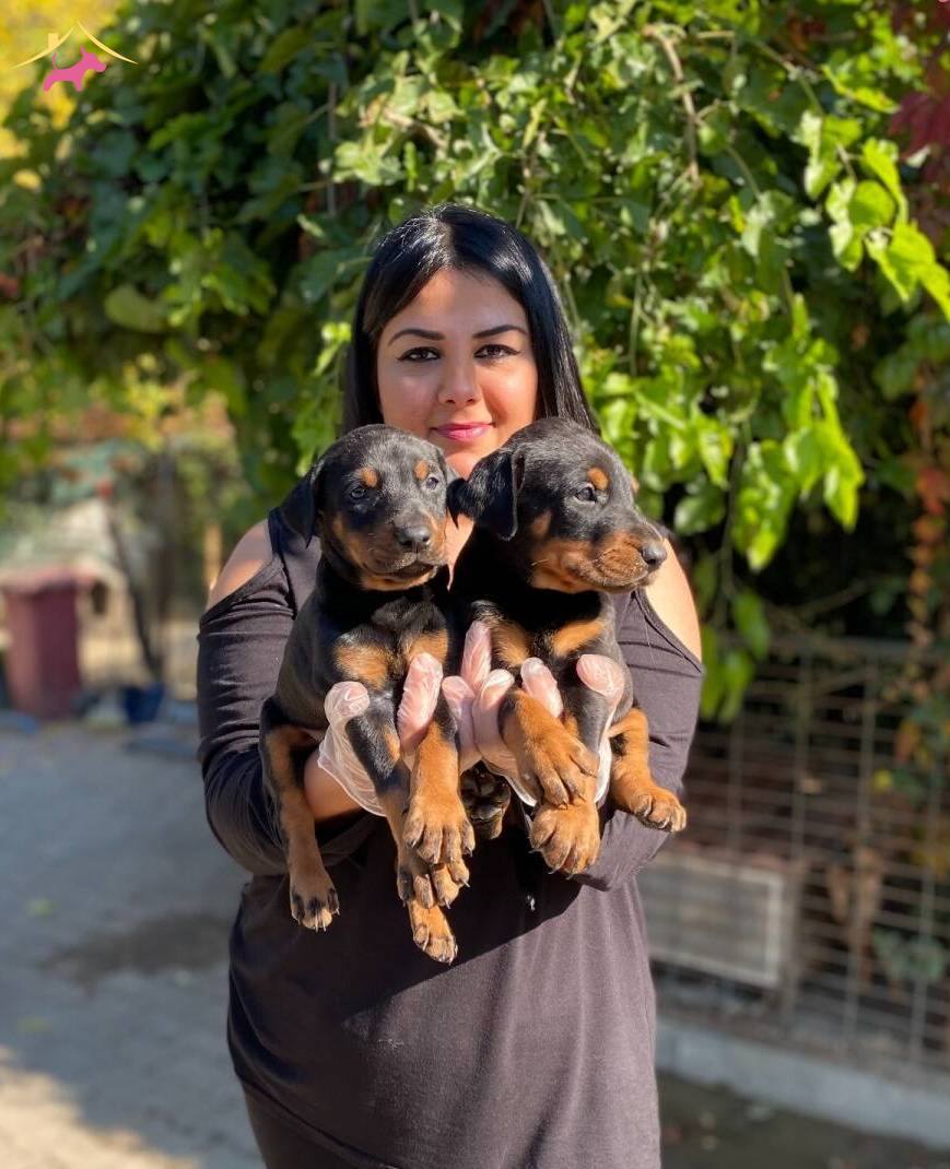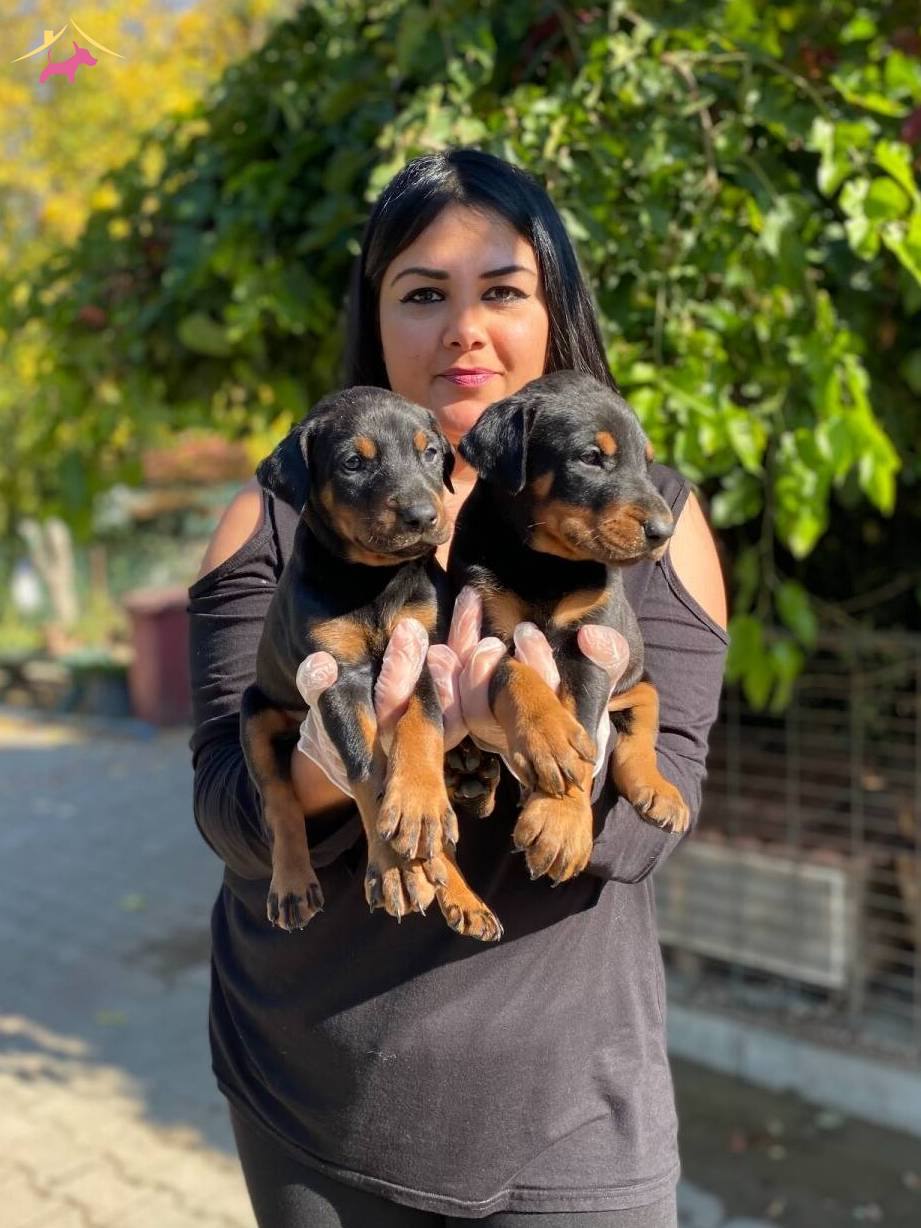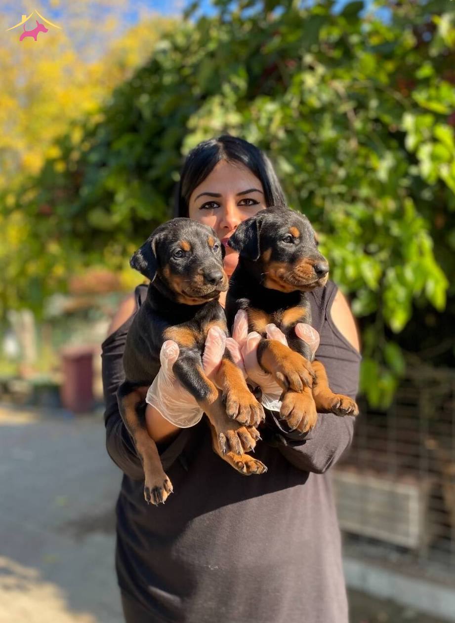 Çiftliğimizde özenle büyütülen King Doberman yavrularım yeni yuvalarını bekliyor. Keskin yüz hatları ve parlamaya hazır atletik postlarıyla dikkat çeken bu can dostlarımızın günü gelen tüm aşıları titizlikle yapılmıştır.