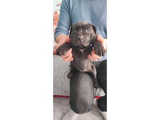 Ödüllü Cane corso nun torunu blue iri kafalı muazzam Zeki olan bu ırk ailenize yeni üye, çocuk bakıcısı ve koruma olarak birebir uygun olan duygusal bağ kuran bi ırk. İtalya'nın gözdesi olan bu ırk yıllar yıllar önce kralların koruma köpeği olarak da bilinir. Gövdesiyle gösterişli zekasıyla hayran bırakan bu bebekler ailenizin yeni üyesi olma hazır.