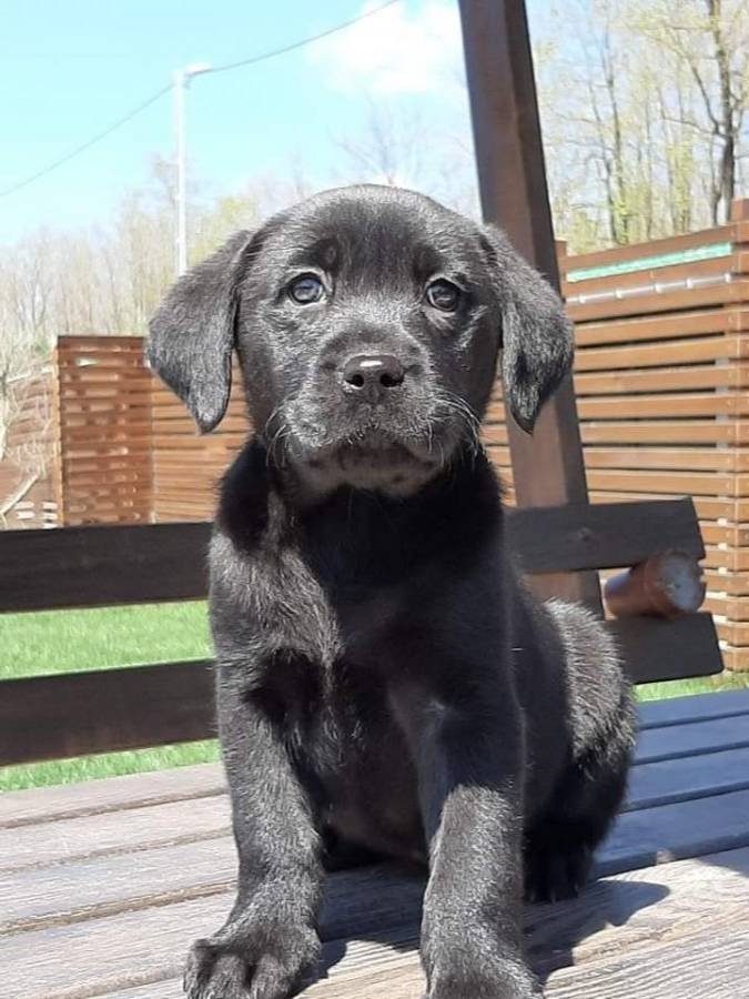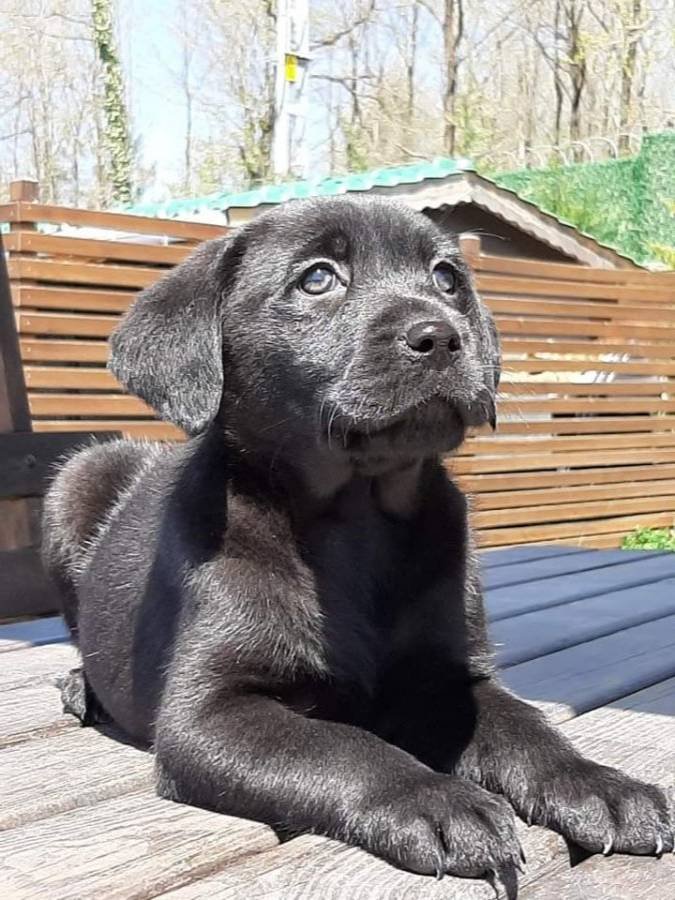 Parlak siyah kürkü ve güçlü kemik yapısıyla dikkat çeken bu Labrador yavrusu, yüksek odaklanma yeteneği ve dengeli karakteriyle öne çıkıyor.