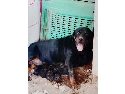 Baba macar anne alman rott yavruları 1 aylık oldular.