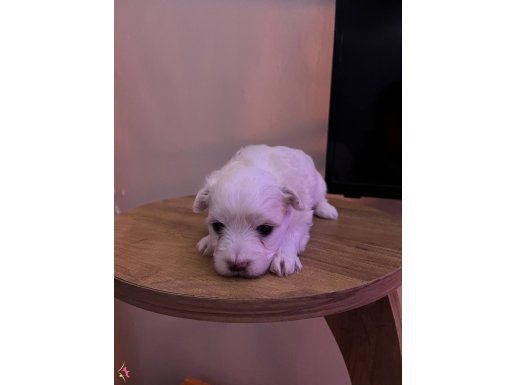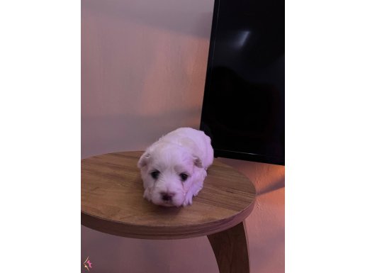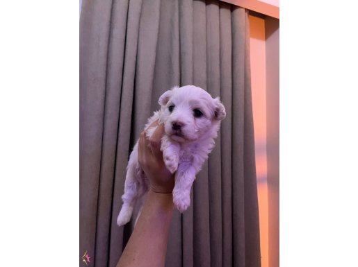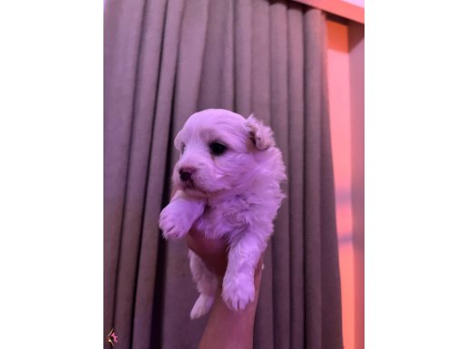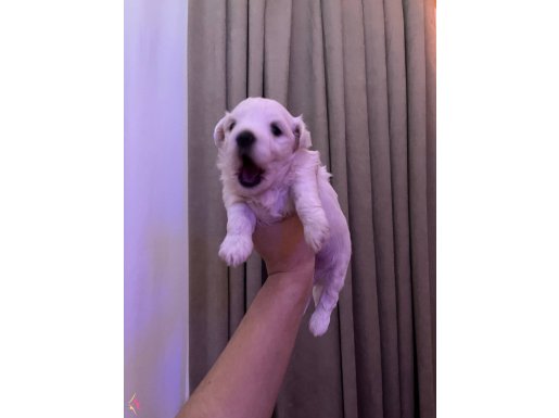 Henüz 1 aylık olan, beyazın en saf tonuna sahip bu erkek Maltese Terrier yavrumuz, zarafetiyle tam bir letafet örneğidir.