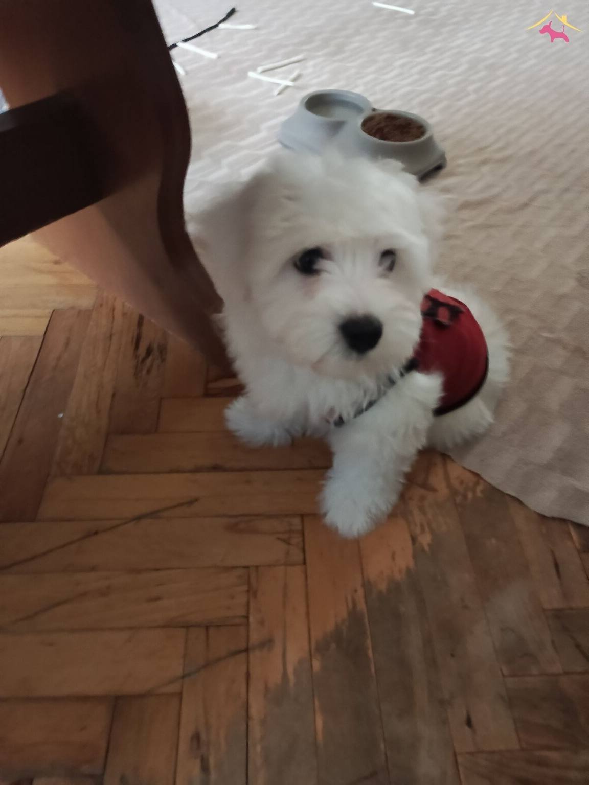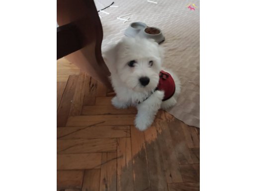 Maltipoo annenin bebeği olan kardan daha beyaz tüylere sahip tontiş bebek surat Maltese Terrier yavrularım ped eğitimini tamamladı, mama yemeye başladı.