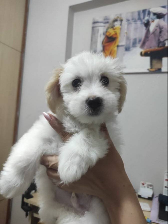 Bu 2 aylık safkan Maltese Terrier yavrumuz, pofuduk beyaz tüy yumağı haliyle tam bir neşe kaynağı.