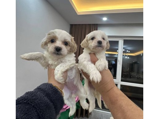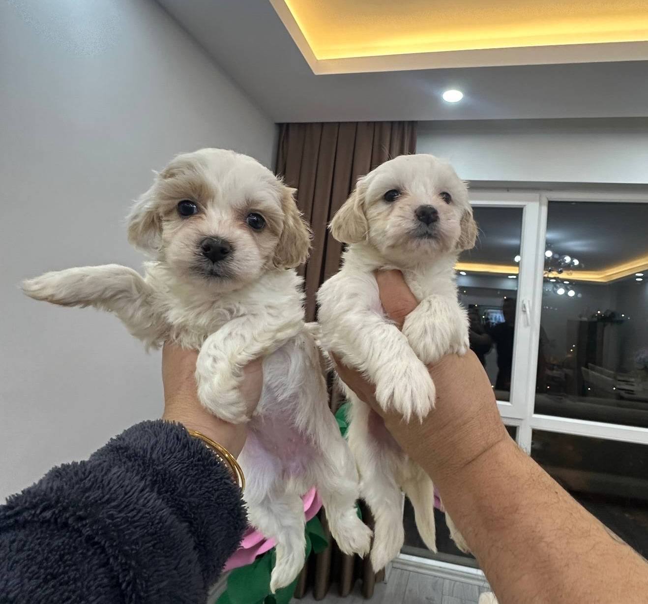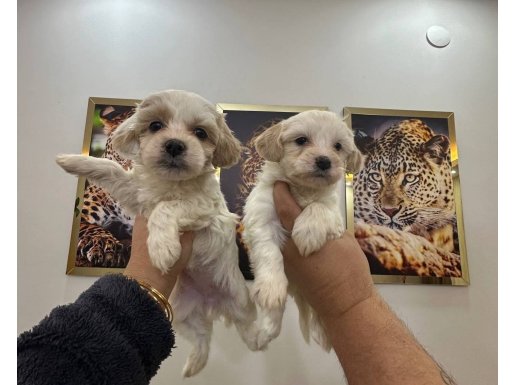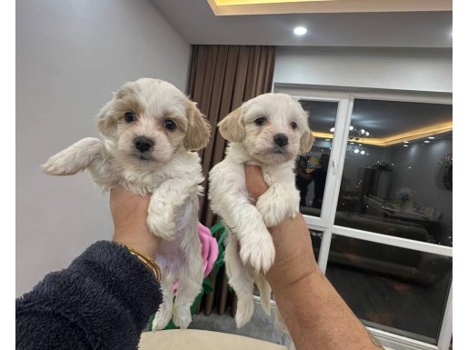 İpeksi beyaz tüyleri ve düğme burunlarıyla büyüleyen Maltipoo yavrularımız yeni yuvalarını bekliyor.