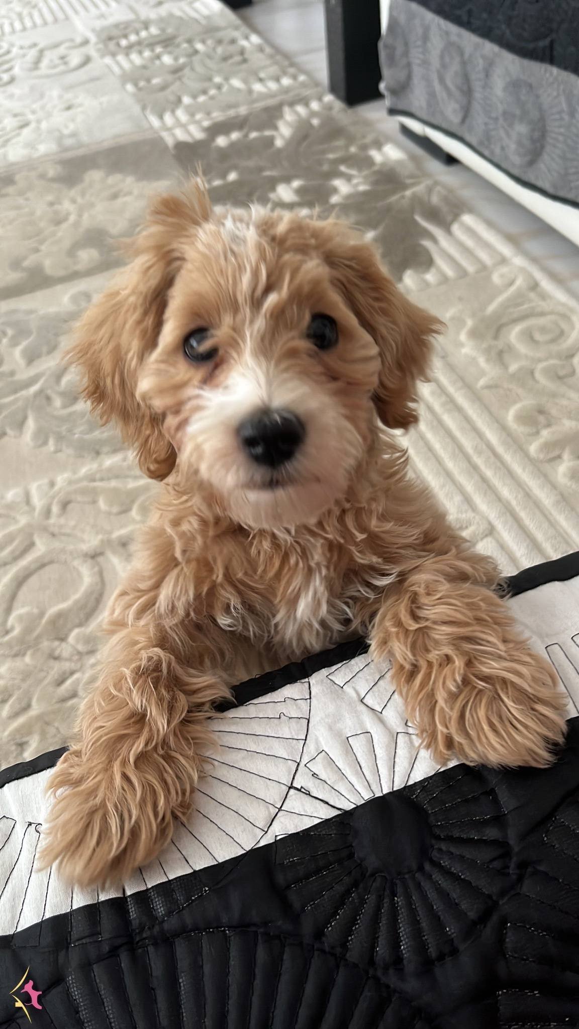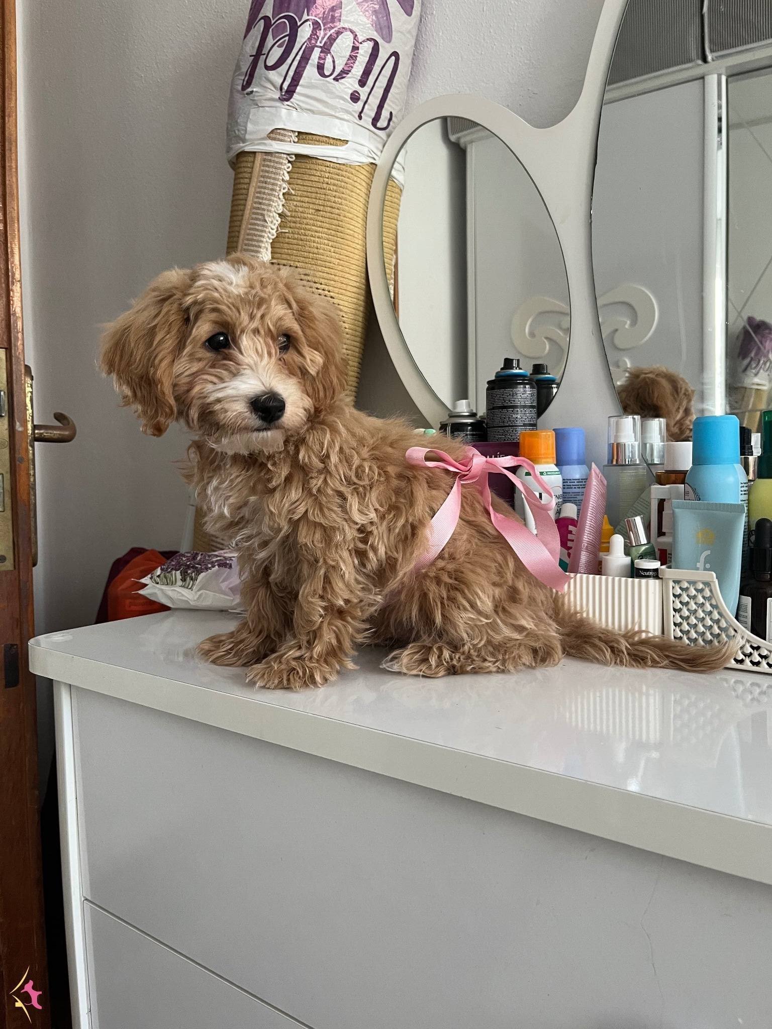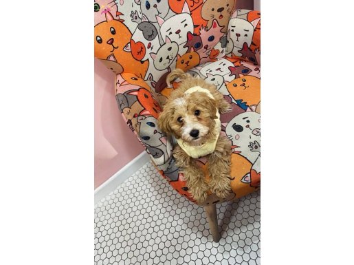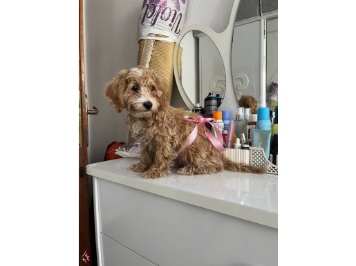 3,5 aylık erkek Maltipoo günü gelen tüm aşıları yapıldı, ped eğitimi var pati verme oturma eğitimleri var.