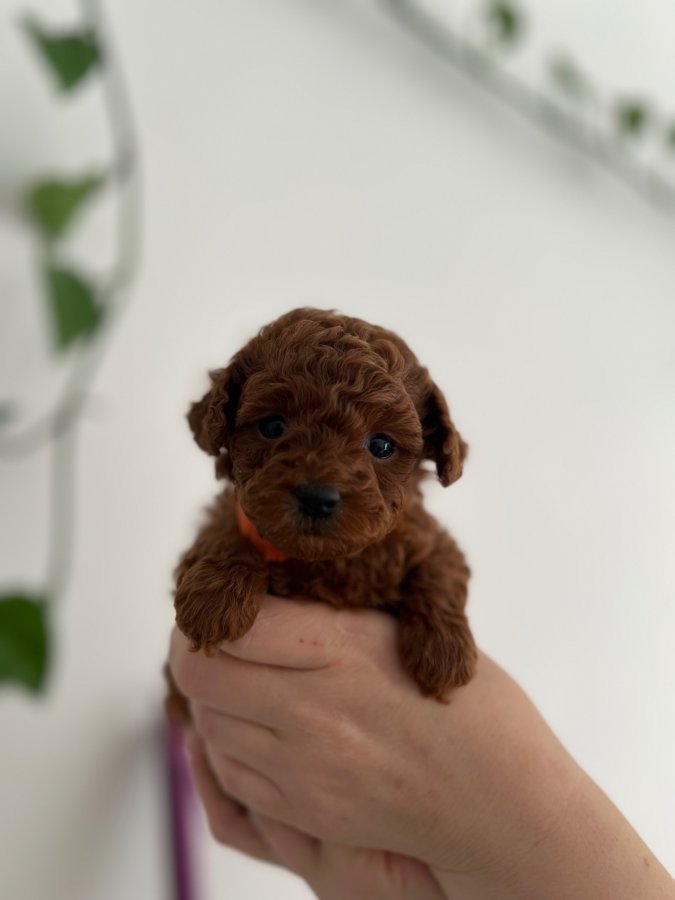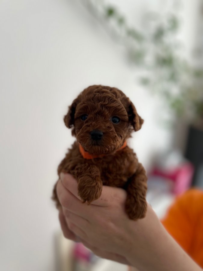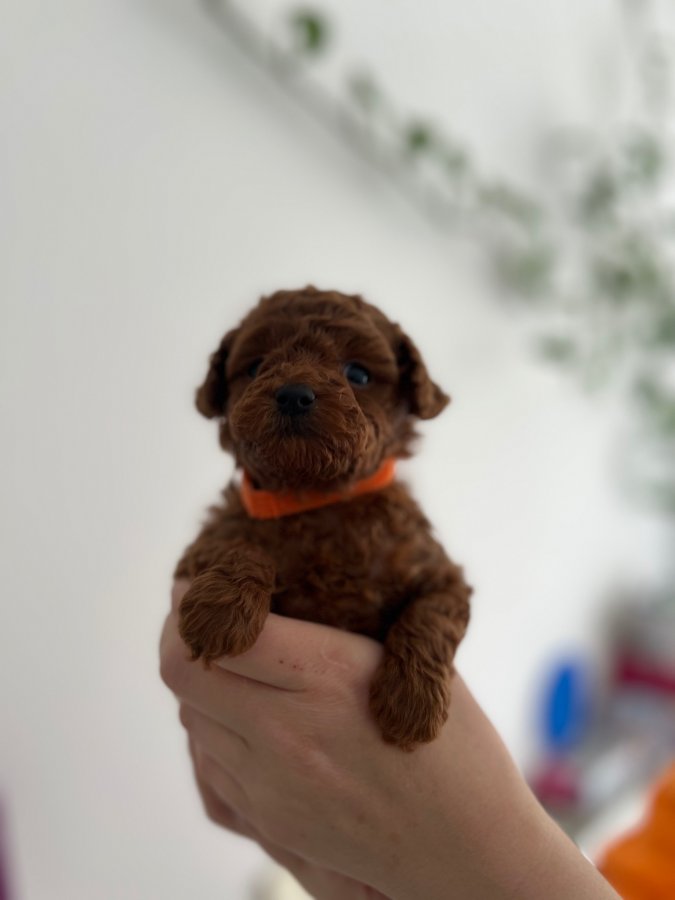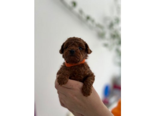 Harika micro boyu ve ipek gibi kızıl tüy yapısıyla bu Poodle yavrumuz tam bir fındık kurdu. Evin neşesi olacak, tüy dökmez, koku yapmaz.