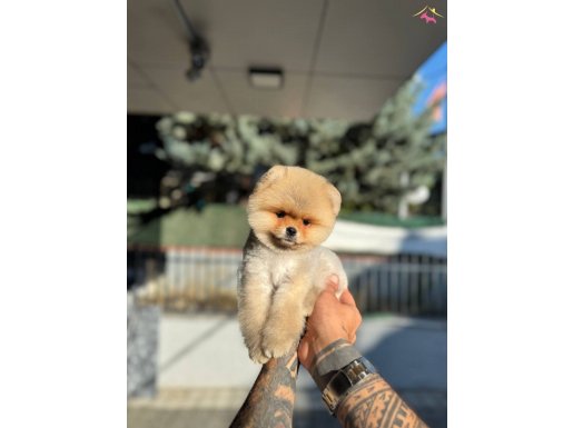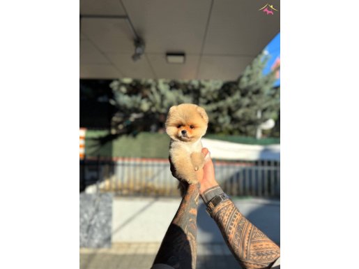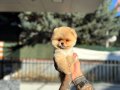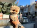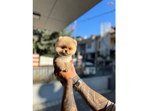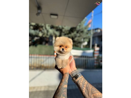 Avuç büyüklüğünde micro teacup kahverengi Pomeranian Boo yavrumuz teddy face özelliğe sahip harika bir süs köpeği olup yuvasına teslim için hazır.