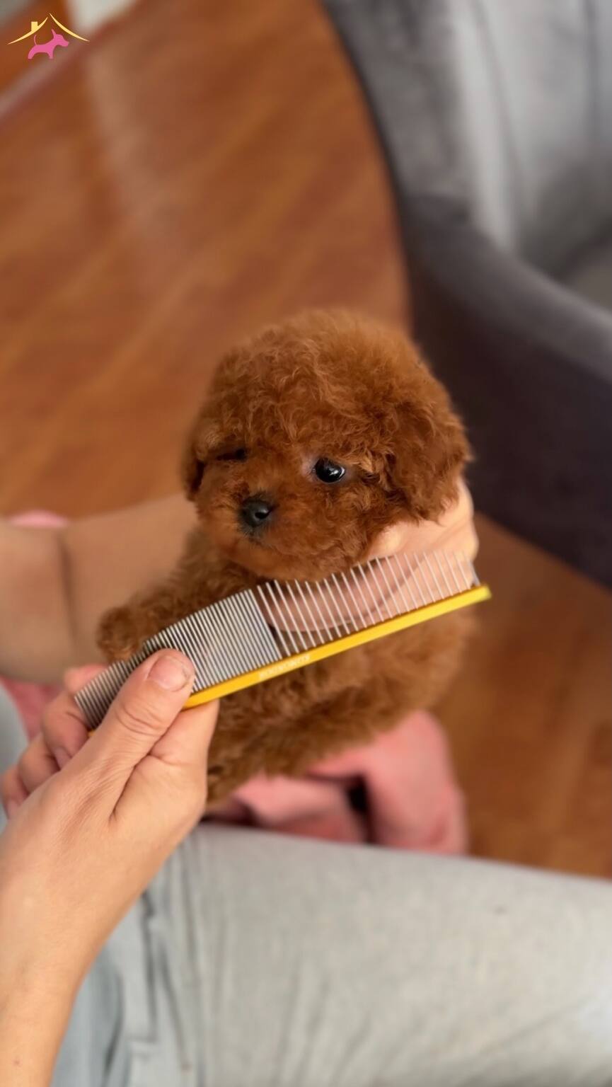 Ufacık teacup boy ölçülü oyuncak köpek görünümlü kızıl kahve Poodle bebeklerimiz sizce de çok sevimli değil mi?