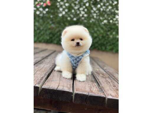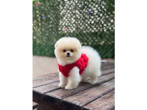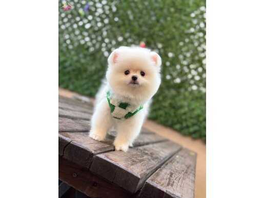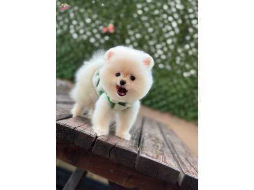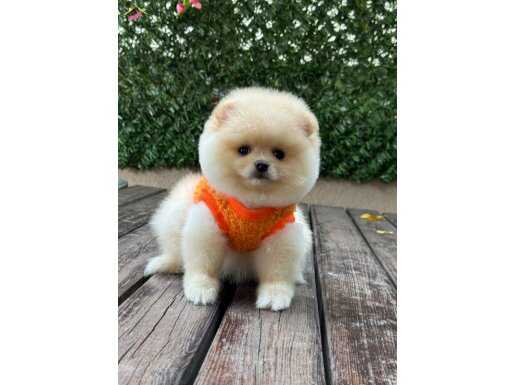 Muhteşem görünüşleri, pamuk gibi tüyleri ve oyuncu yapılarıyla Safkan Pomeranian yavrularımız yeni yuvalarını bekliyor.
