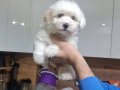 pufidik beyaz tüyleri ve sempatik papyonuyla dikkat çeken, büyüme yapmayan minyatür Maltese Terrier yavrularım yeni yuvalarına gitmeye hazır. Irk özelliği gereği tüy dökmeyen ve koku yapmayan bu ufaklıkların parazit uygulamaları ile Pupy DP aşıları tamamlanmıştır.